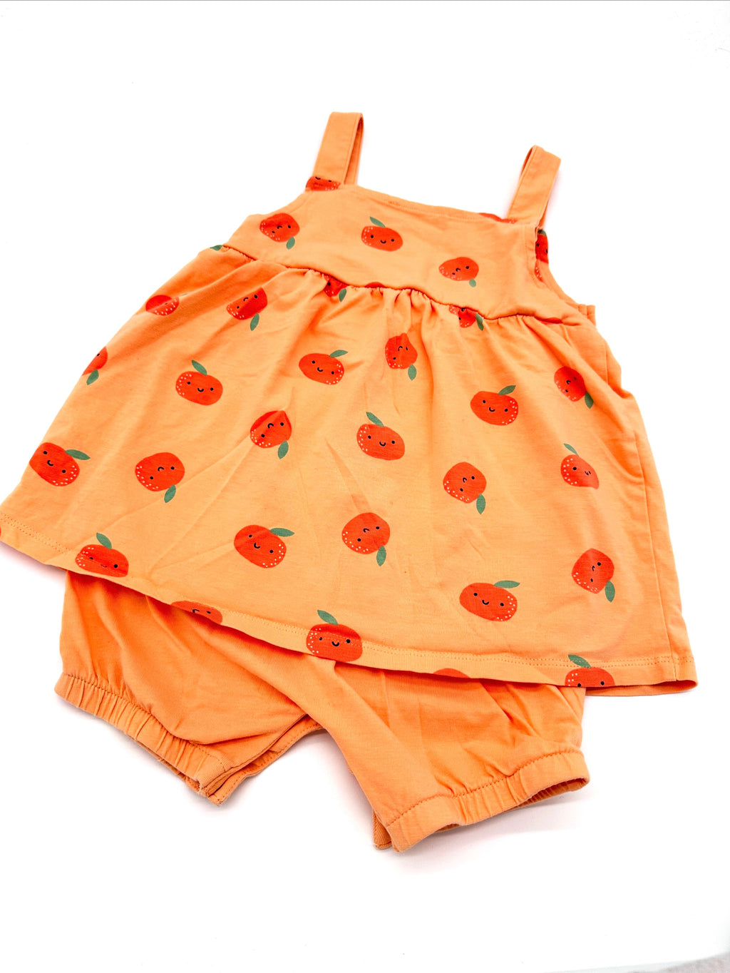 Dieser zuckersüße Sommer-Einteiler mit eingenähter Hose von Manguun ist ein echter Hingucker! Das leuchtende Orange mit fröhlichem Orangen-Print bringt sofort Sommerstimmung und sorgt für gute Laune.