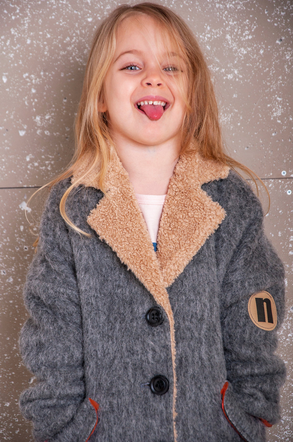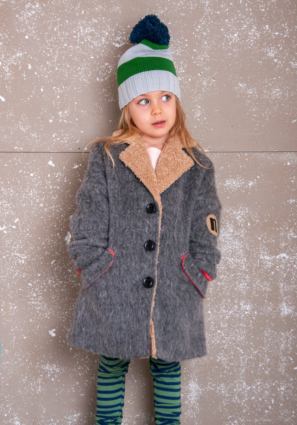 COAT IN COTTON/POLYESTER FLANNEL WITH FAKE FUR COLLAR.