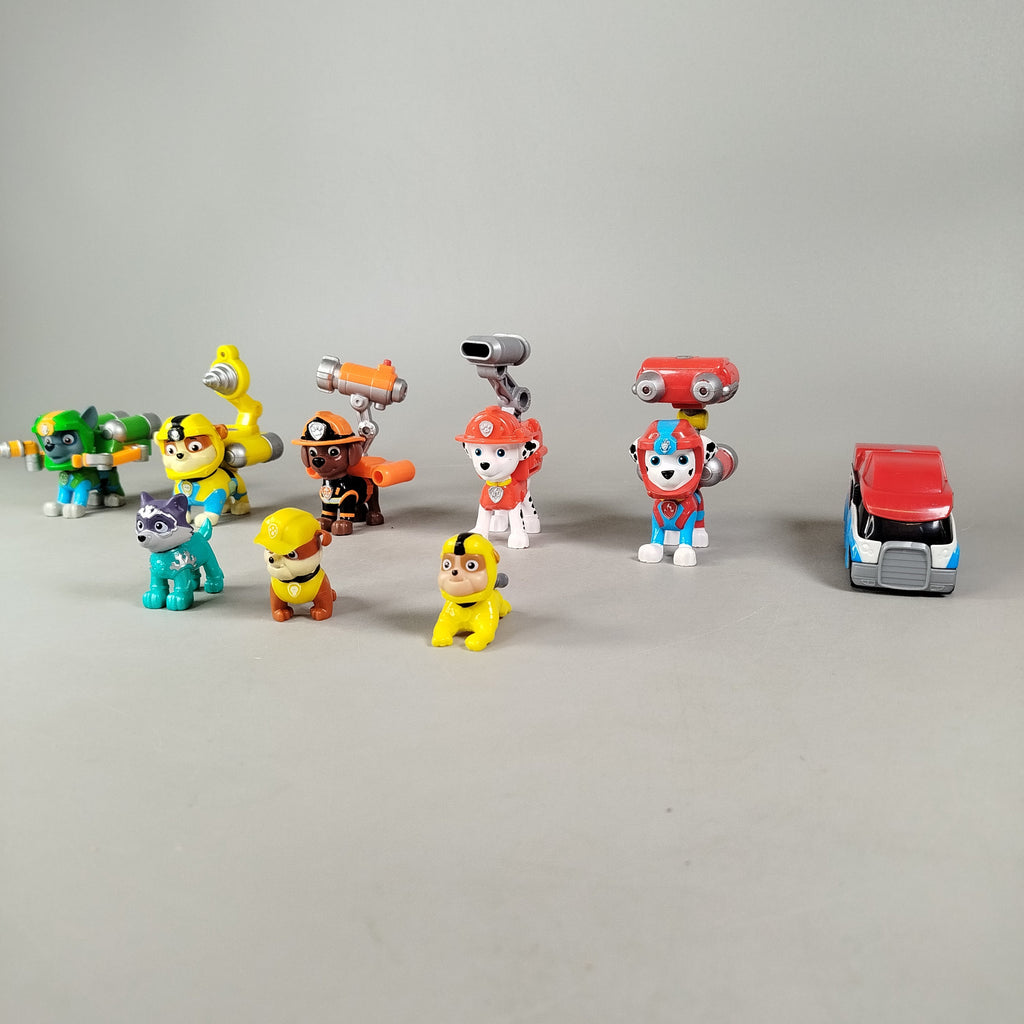 Hol dir das Paw Patrol Figuren-Set mit acht detailreichen Charakterfiguren und einem Fahrzeug-Projektor. Das Fahrzeug enthält eine eingebaute Linse und zeigt Paw Patrol Motive zur Projektion. Perfekt für kleine Fans zum Nachspielen spannender Abenteuer. Verpackung fehlt, die Spielzeuge sind in sehr gutem gebrauchten Zustand und zeigen nur minimale Gebrauchsspuren. Gib diesem Spielzeug ein neues Zuhause und mach den nächsten Einsatz zum Abenteuer!