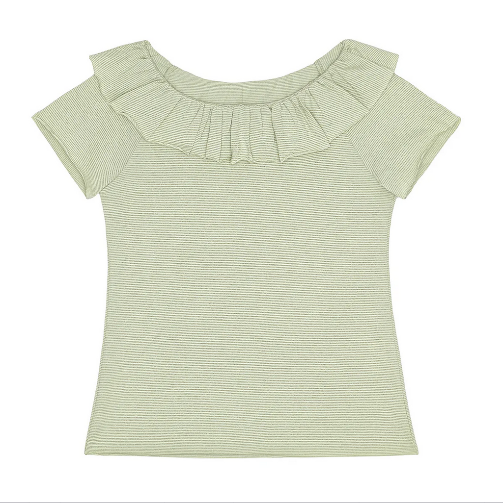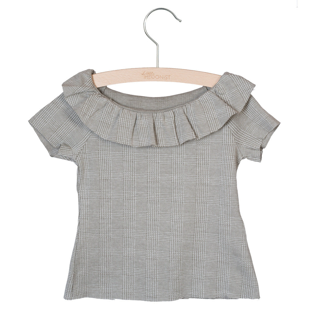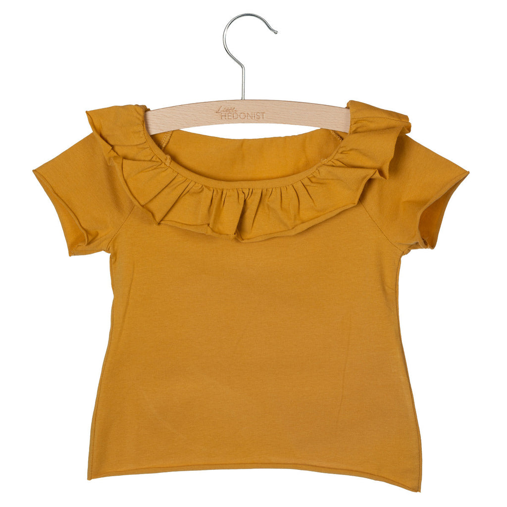 Das kurzärmelige Shirt mit Rüschenkragen von Little Hedonist ist ein zartes Highlight für jede Kinder-Garderobe. Gefertigt aus besonders weicher Bio-Baumwolle, bietet es ein angenehmes Tragegefühl und eine stilvolle, verspielte Optik. Der Rüschenkragen verleiht dem Shirt eine elegante Note, die sowohl alltagstauglich als auch ideal für besondere Anlässe ist. Perfekt kombinierbar mit Röcken wie MAGGY oder Shorts wie LEILA – ein nachhaltiges Lieblingsstück für kleine Fashionistas mit Sinn für feine Details.