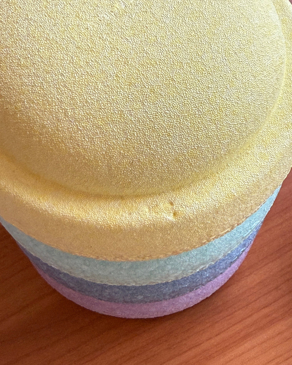Hinweis: Der gelbe Stein weist Nutzungsspuren (kleine Babyzahnabdrücke) auf (siehe Foto).