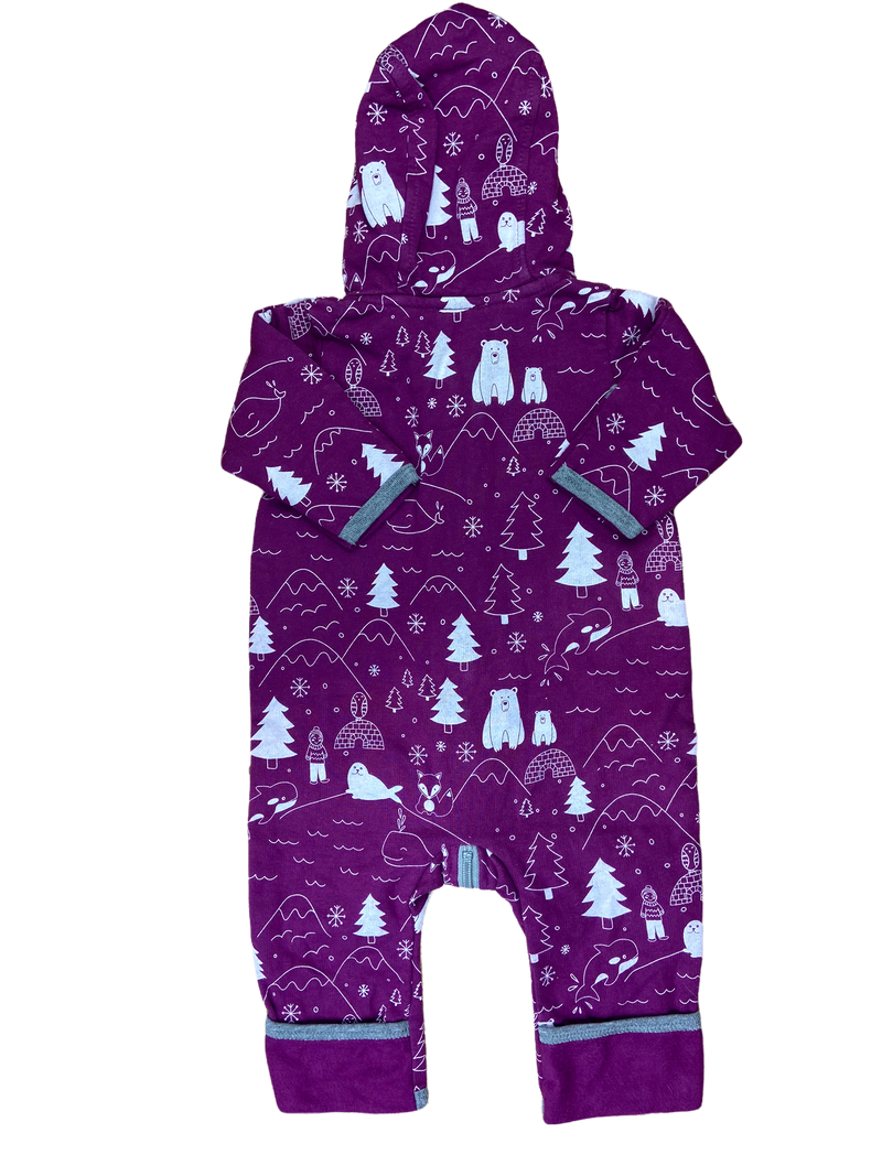 Baumwolle-Overall von Loud + Proud mit Kapuze. Der Overall hat Bündchen zum Umschlagen und einen Reißverschluss.