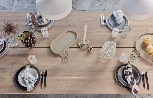 Fall in love with Jali! The glassware series Jali is made with cute spots in a simple design with rounded edges, making it a chubby and powerful glass. The Jali series is versatile and suitable for both your outdoor summer table setting or a modern touch to your Christmas table. We encourage you to mix all the Colors for your very own collection of Jali glassware. Jali Water Carafe is available with spots in white and amber, with a practical handle also made of glass. The Jali series is handmade, making every single piece unique, and they will vary in size, shape and design. The name Jali means spot. Style no. L300378 Material: 100% Glass Dimensions: Ø15,3 x H20 cm Suitable for dishwasher and microwave. For more information on food contact material and declarations on conformity, please use this link: https://oyoy.presscloud.com/digitalshowroom/#/gallery/Compliance(You can search a specific item by entering the item number in the top right search field)