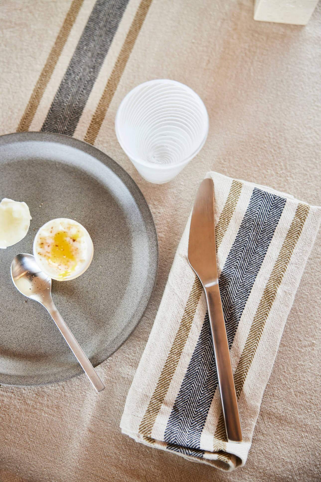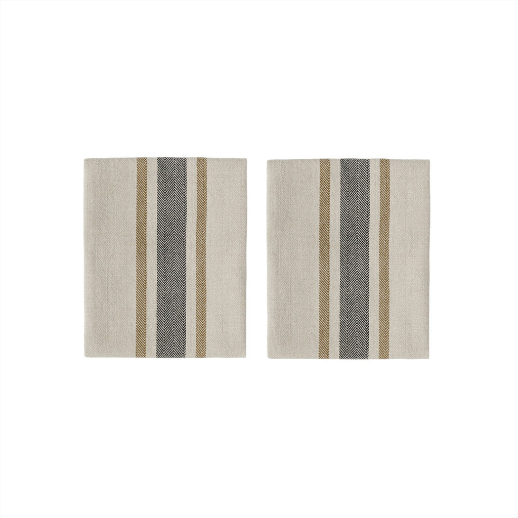The Linu Napkin is a pack of two featuring premium quality of organic cotton. As part of the Linu series, these napkins boast a herringbone weave and a simple design adorned with a variation of different stripes.