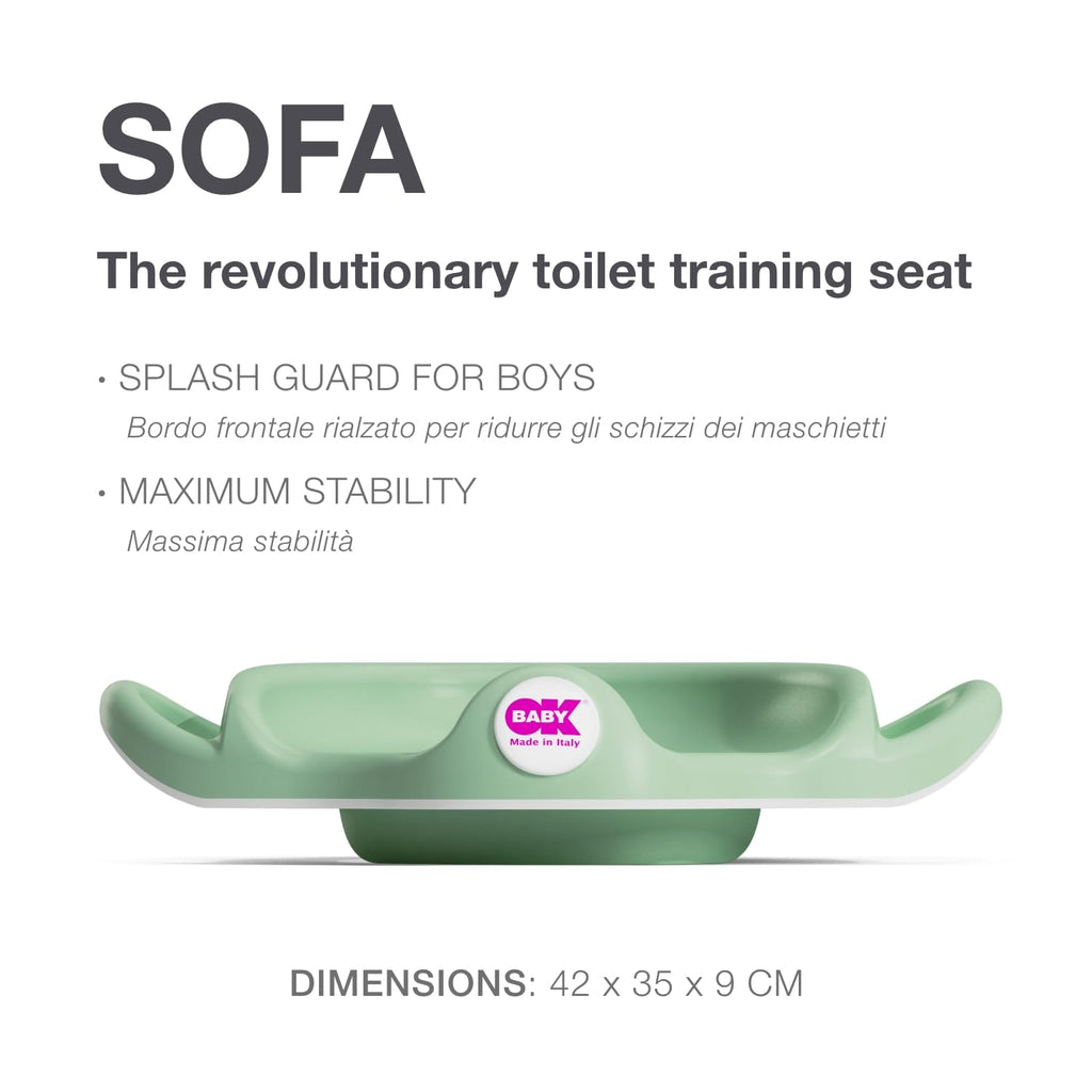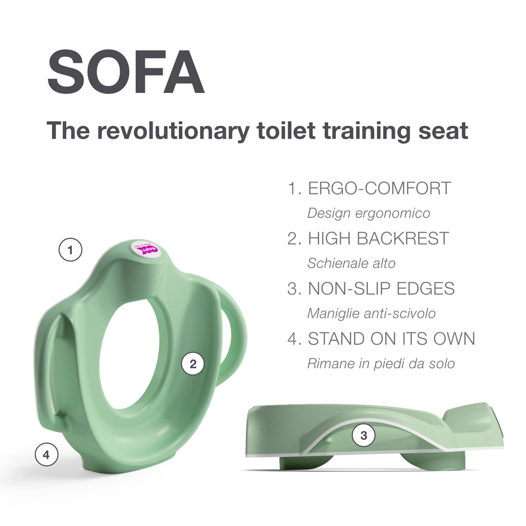 Ergonomisches Design, hohe Rückenlehne für maximalen Komfort; Spritzschutz für Jungen. Breite und erhöhte Griffe ermöglichen optimale Stabilität für das Kind. Anti-Rutsch-Umrandung sorgt für perfekten Halt auf der Toilette. Steht selbstständig zur einfachen Aufbewahrung: 42 x 35 x 9 cm.