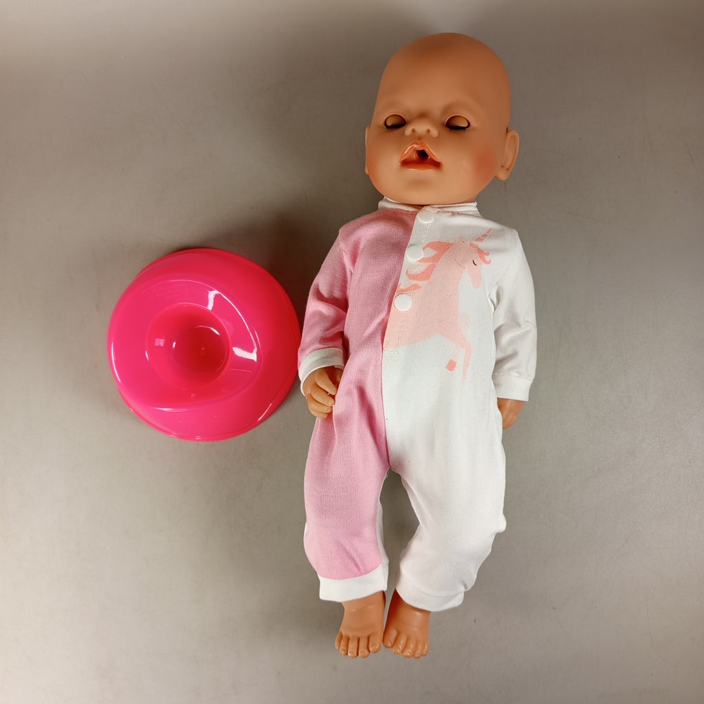 Die Baby Born Puppe mit Töpfchen von Zapf Creation ist eine Baby-Puppe im rosa-weißen Strampler mit Einhorn-Motiv und beinhaltet ein pinkes Töpfchen. Die Puppe eignet sich für Rollenspiele rund um das Thema Fürsorge und ermöglicht kreatives Spielen sowie Förderung motorischer Fähigkeiten. Altersempfehlung: 3–5 Jahre. Achtung: Nicht für Kinder unter 3 Jahren geeignet, Erstickungsgefahr aufgrund verschluckbarer Kleinteile.