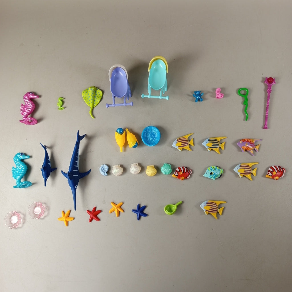 Hol dir das Playmobil Figuren-Set mit 19 Meerjungfrauen und zahlreichen Meeresbewohnern wie Delfinen, Fischen und Korallen. Dieses farbenfrohe Unterwasser-Set fördert fantasievolles Rollenspiel und bietet viele Details wie Muscheln, Pflanzen und Meereszubehör. Das Spiel befindet sich in gutem gebrauchten Zustand mit leichten Gebrauchsspuren. Die Vollständigkeit konnte nicht überprüft werden. Hinweis: Nicht für Kinder unter 3 Jahren geeignet, da Kleinteile verschluckt werden können. Gib diesem Spielzeug ein neues Zuhause und tauche ab ins Unterwasserabenteuer!
