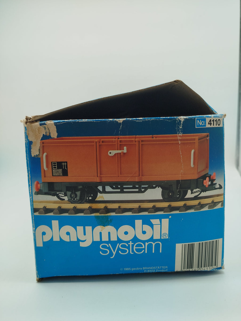 Hol dir den Playmobil System Güterwagen 4110 und erlebe nostalgischen Spielspaß auf deiner Spielbahn! Der braune offene Waggon mit roten Puffern und weißen Griffen ist ca. 25 cm lang und überzeugt durch detaillierte Verarbeitung. Der Wagen ist in sehr gutem Zustand ohne sichtbare Gebrauchsspuren und kommt in der Originalverpackung, die, aufgrund des Alters, deutliche Abnutzungen mit Knicken und Abriebstellen zeigt. Die Vollständigkeit konnte nicht überprüft werden. Gib diesem Klassiker aus den 1980er Jahren ein neues Zuhause. Hinweis: Enthält verschluckbare Kleinteile, nicht geeignet für Kinder unter 3 Jahren.