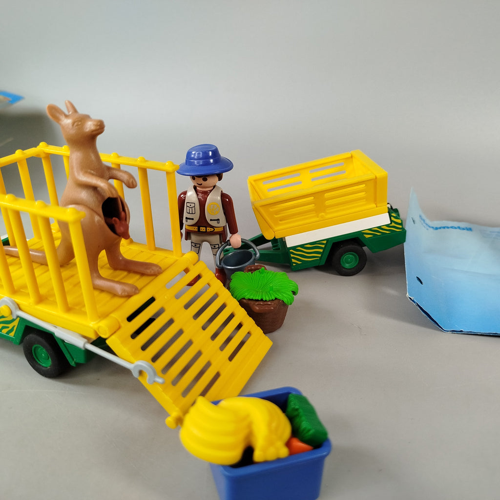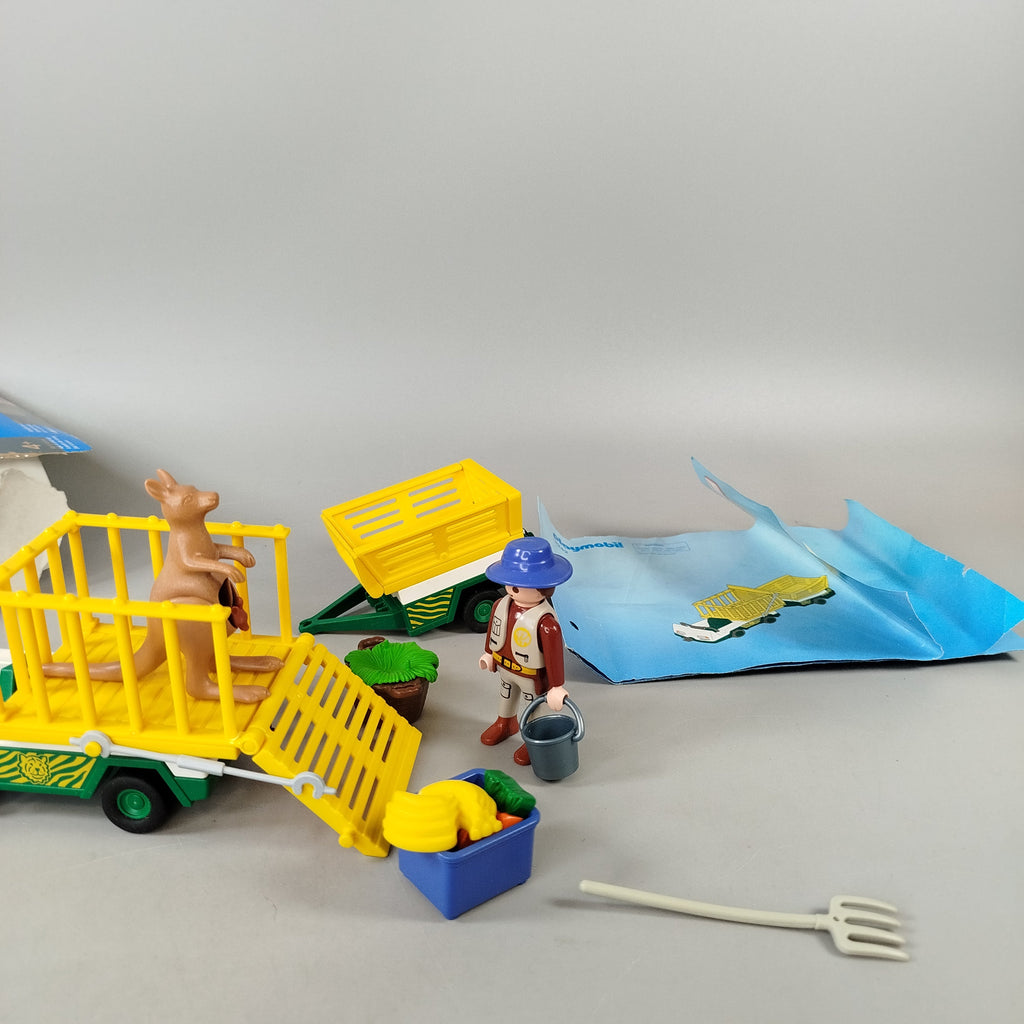 Hol dir das Playmobil Zoo-Tiertransport Set 3242 und hilf dem Ranger bei der Pflege seiner Tiere! Dieses Set enthält einen Tierpfleger mit Hut, Eimer und Werkzeugen, ein Fahrzeug mit zwei Anhängern, einen Kanguru mit Jungtier sowie weiteres Zubehör wie Futter, Pflanzen und eine Anleitung. Die Figuren und Teile sind in sehr gutem Zustand, die Originalverpackung weist deutliche Gebrauchsspuren auf. Gib diesem liebevoll gestalteten Spielzeug ein neues Zuhause und fördere spielerisch Kreativität und Tierliebe. Sicherheitshinweis: Nicht für Kinder unter 3 Jahren geeignet, da Kleinteile verschluckt werden können.