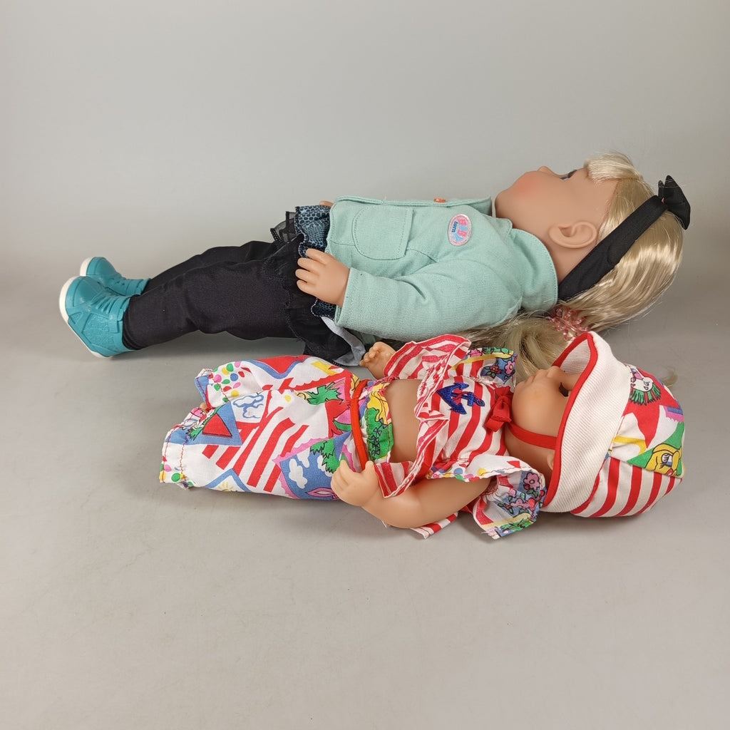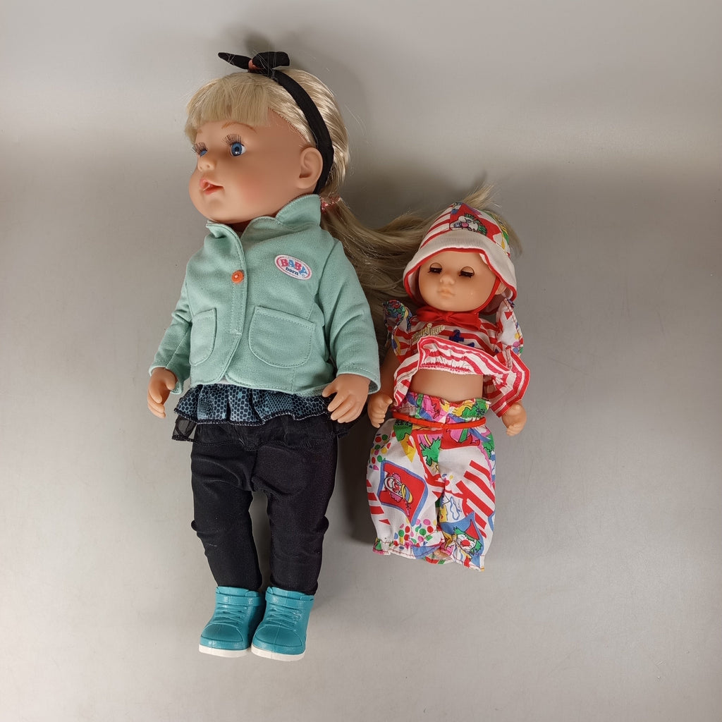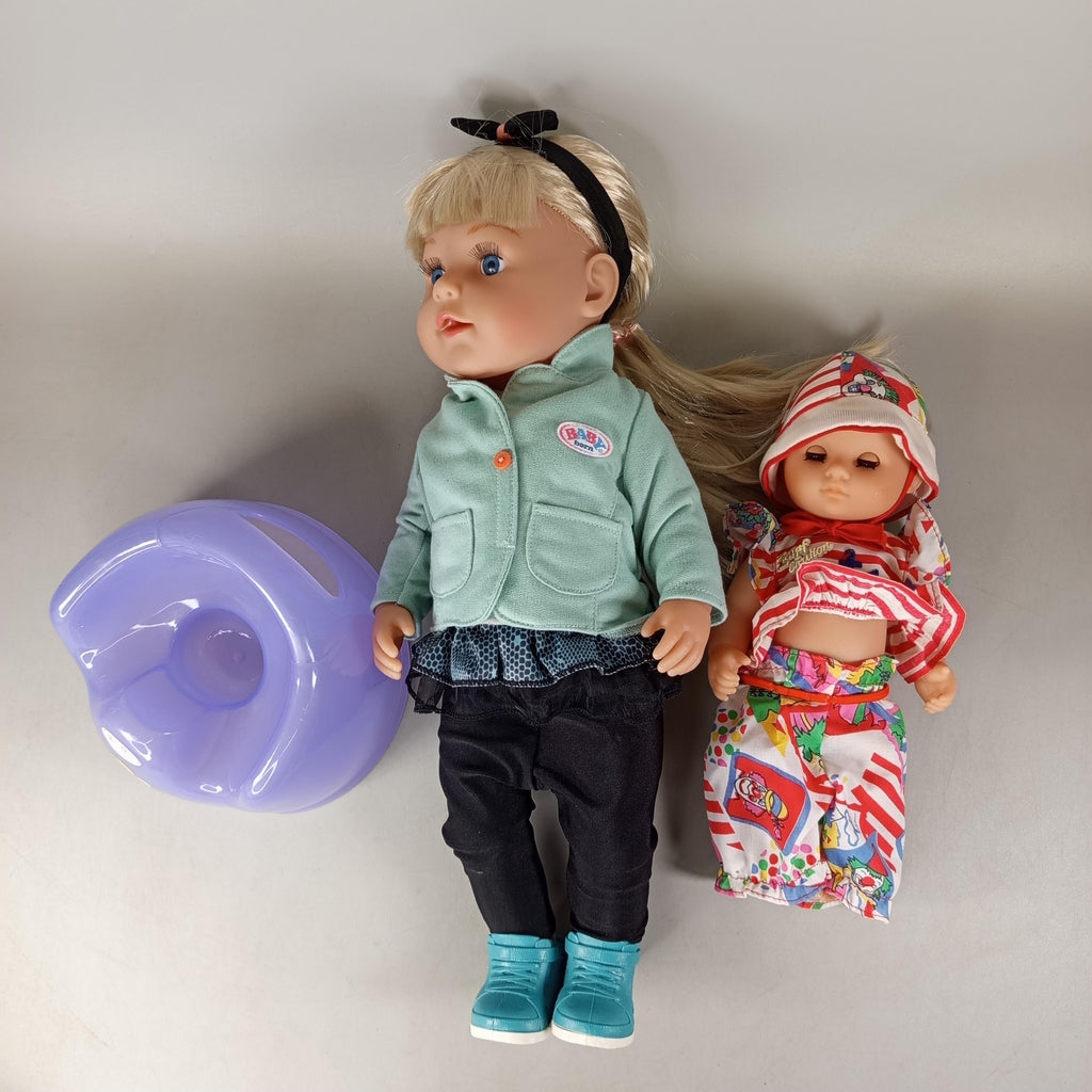 Hol dir das BABY born Puppen-Set mit zwei Puppen und einem lilafarbenen Töpfchen inklusive niedlichem Entenmotiv. Die Puppen bestehen aus robustem Kunststoff und zeigen nur leichte Gebrauchsspuren. Die Vollständigkeit konnte nicht überprüft werden. Verpackung fehlt, aber das Set ist gut erhalten. Nachhaltig wiederverwendet für stundenlangen Spielspaß mit beliebten BABY born Figuren. Sicherheitshinweis: Enthält Kleinteile, nicht geeignet für Kinder unter 3 Jahren.