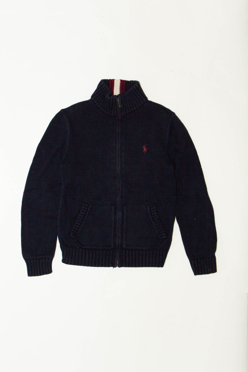 POLO RALPH LAUREN - dark blue cardigan with zipper and stand-up collar.