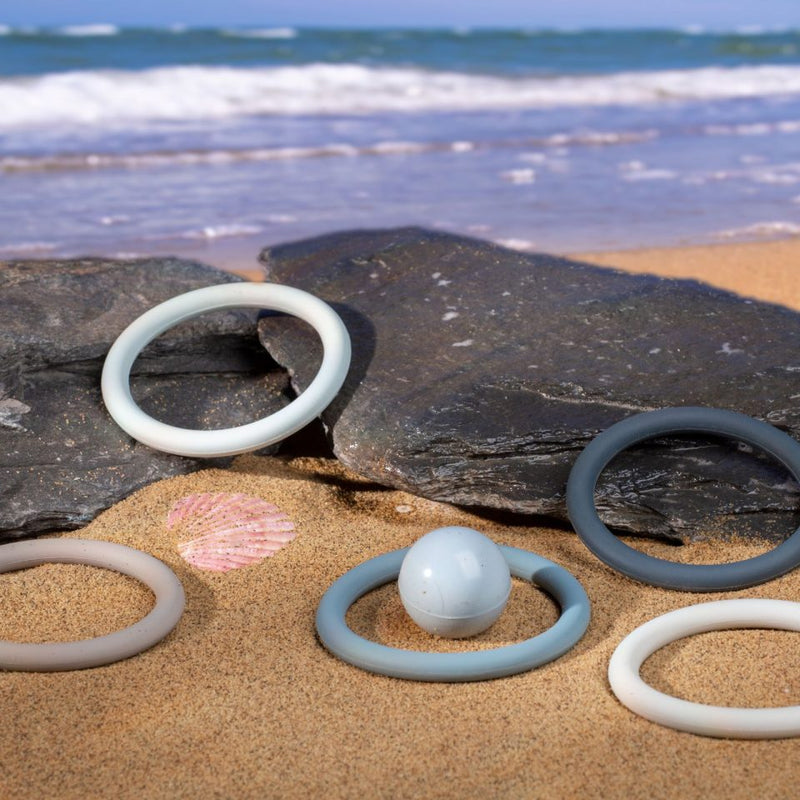 - Spielziel: Mit 5 bunten Wurfringen den kleinen Zielball treffen oder umwerfen!