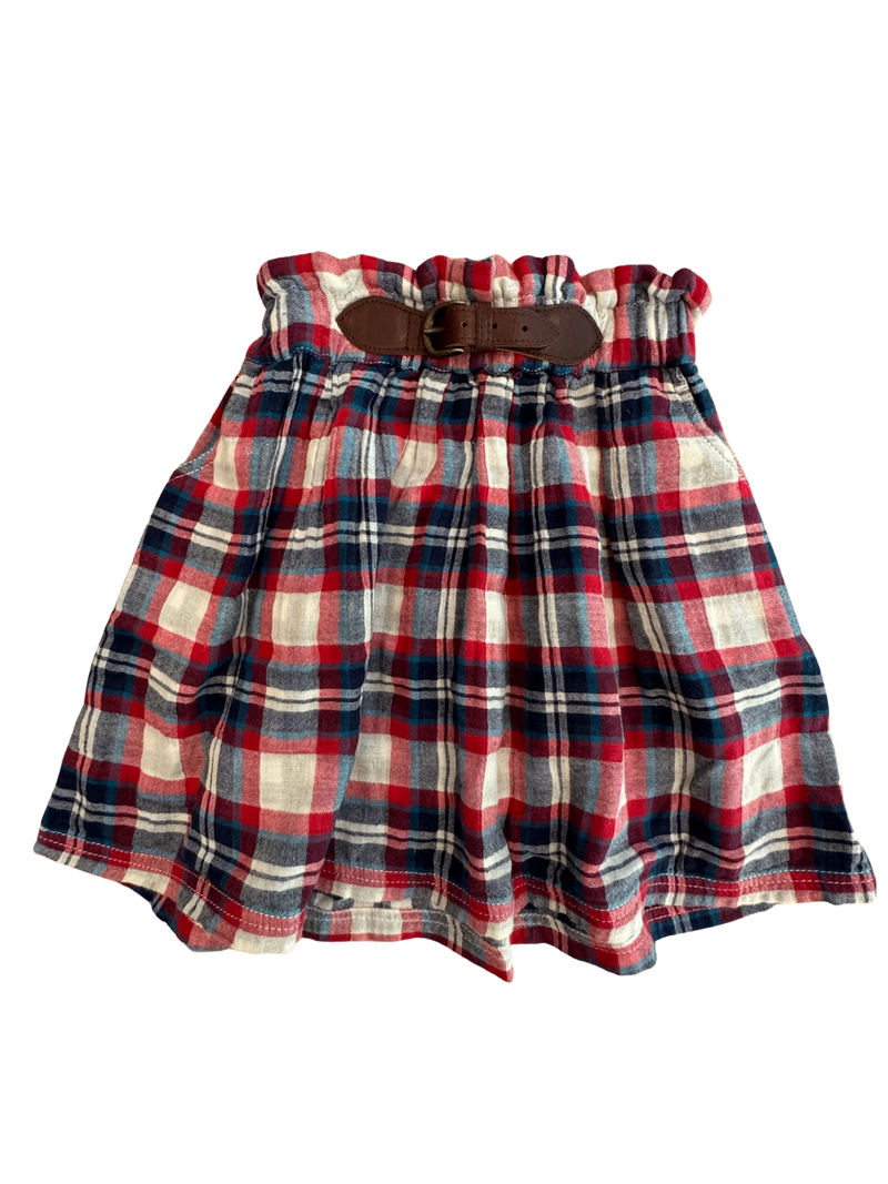 Diese liebevoll gestaltete Kinderrock aus weichem Flanell mit klassischem Karo-Muster ist perfekt für herbstliche Tage. Der praktische Gürtel sorgt für eine bequeme Passform. Ideal für stilbewusste kleine Damen, die Wert auf modische Second-Hand-Outfits legen und dabei nachhaltig shoppen möchten.