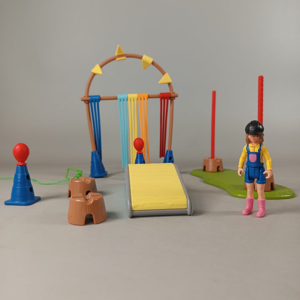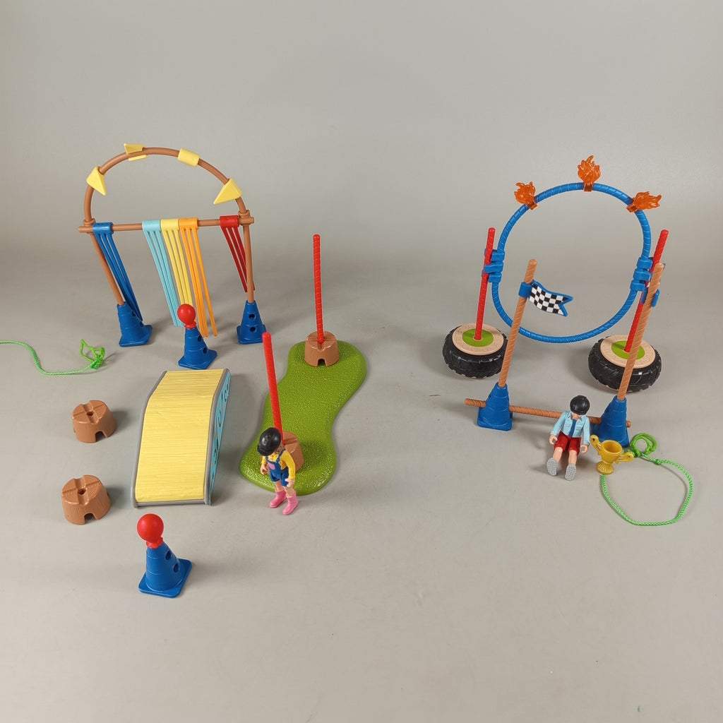Hol dir das Schleich Figuren-Set mit spannendem Hindernisparcours und vielseitigem Zubehör. Enthalten sind zwei Figuren mit Helmen, eine gelbe Rampe, Fahnen, Ringe und Flammenelemente für actionreiche Spiele. Gib diesem Spielzeug ein neues Zuhause und fördere kreatives Rollenspiel. Das Set befindet sich in einem sehr guten gebrauchten Zustand. Die Vollständigkeit konnte nicht überprüft werden. Hinweis: Enthält Kleinteile, nicht geeignet für Kinder unter 3 Jahren.