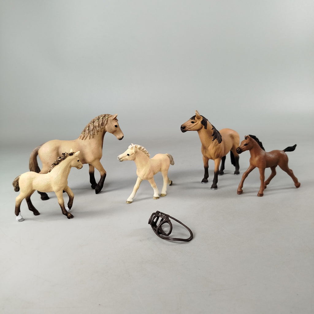 Hol dir das Schleich Pferdefiguren-Set mit fünf detailreichen Tieren und kleinem Zubehör. Die Figuren zeigen verschiedene Pferderassen, ideal für naturgetreues Spielen und Sammeln. Alle Figuren bestehen aus robustem Kunststoff und stammen aus Deutschland. Das Spielzeug befindet sich in einem sehr guten gebrauchten Zustand mit nur geringen Gebrauchsspuren. Gib diesen Figuren ein neues Zuhause und fördere fantasievolles Spielen. Hinweis: Nicht für Kinder unter 3 Jahren geeignet, da Kleinteile verschluckt werden können.