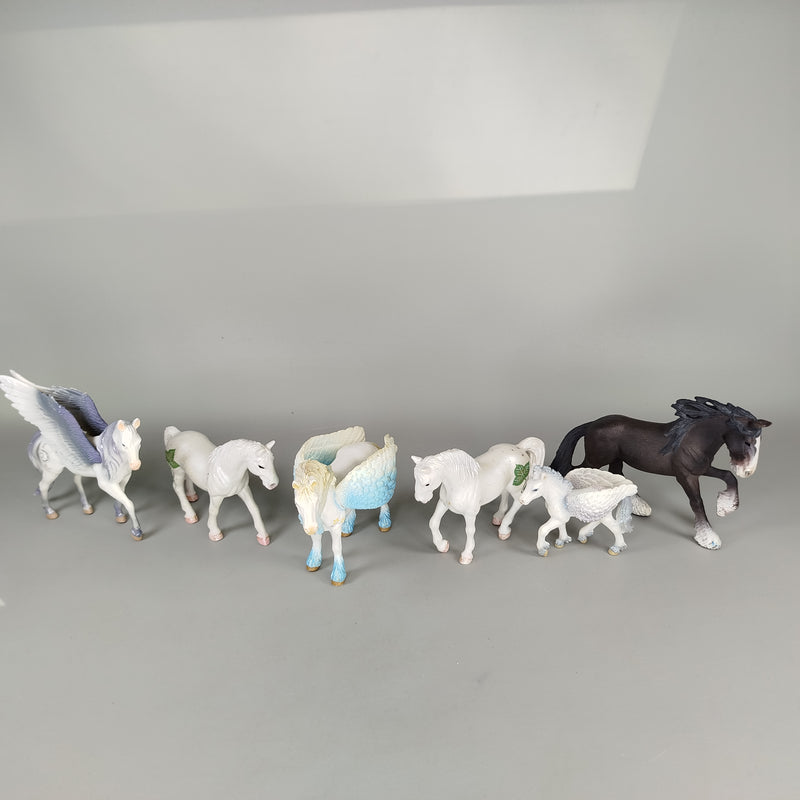 Hol dir das Schleich Pferde-Set und befülle deine Sammlung mit diesen wunderschönen Pferdefiguren! Dieses Set umfasst 6 detailreiche Schleich Pferde: von majestätischen Pegasi bis hin zu klassischen weißen Pferden mit einzigartigen Merkmalen. Die Figuren zeichnen sich durch farbenfrohe Details wie lila getönte Flügel, grüne Blattsymbole und dekorative Sterne aus. Gib diesem Spielzeug ein neues Zuhause und lass Kinderaugen leuchten! Achtung: Ideal für Sammler und Kinder. Die Figuren sind ca. 12-15 cm groß. Das Spielzeug befindet sich in einem sehr guten gebrauchten Zustand.