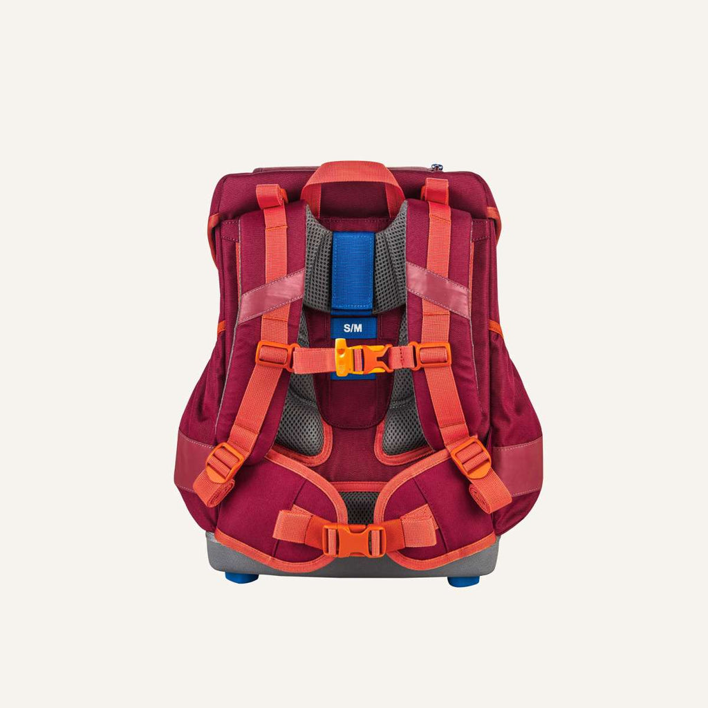 Die breiten, atmungsaktiven Schulterträger sind weich gepolstert und sorgen gemeinsam mit dem verstellbaren Brust- und Hüftgurt für eine gleichmäßige Gewichtsverteilung. Dadurch wird der Rücken entlastet und der Schulranzen bleibt auch bei voller Beladung angenehm zu tragen.