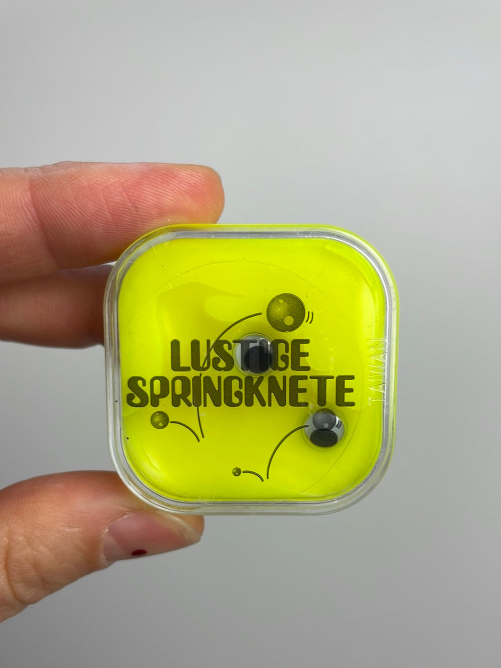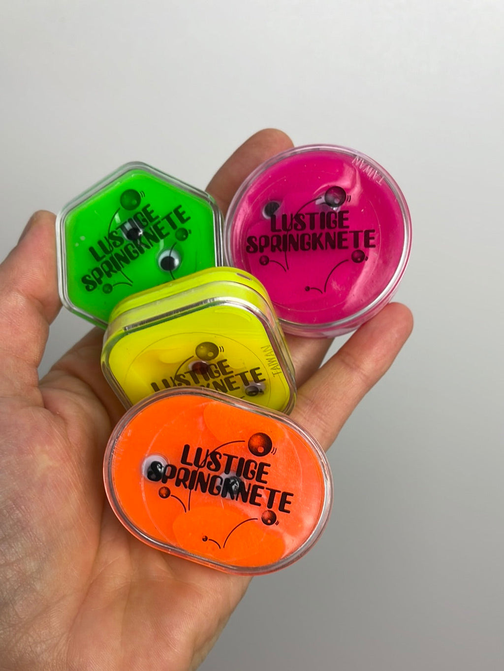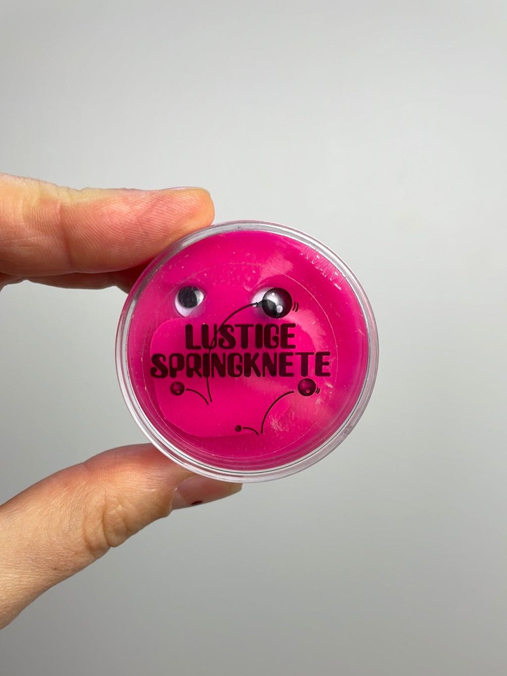 Bunte Springknete mit lustigen Wackelaugen. Formbar wie Knete - springt wie ein Flummi!