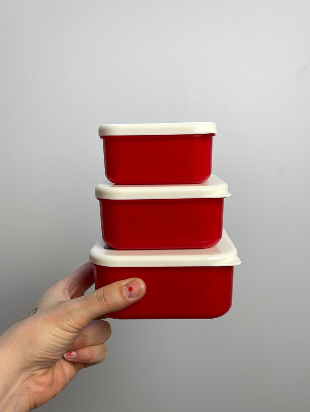 Ein wundervolles Set mit drei ineinander stapelbaren Snackdosen