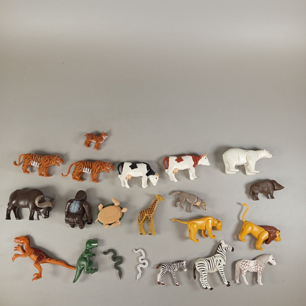 Hol dir das Tierfiguren-Set mit einer spannenden Mischung aus Farm-, Dschungel- und Dino-Tieren. Enthält 21 Figuren, darunter Kühe, Löwen, Zebras, Tiger und Dinosaurier. Eine Dinofigur hat ein fehlendes Bein. Ideal für Rollenspiele und kleine Tierfans. Das Spielzeug befindet sich in gutem, gebrauchten Zustand, ohne Originalverpackung. Gib diesen Figuren ein neues Zuhause und fördere kreatives Spielen.