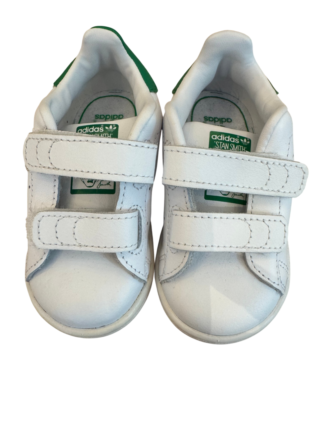 Diese niedlichen adidas Stan Smith Kinderschuhe sind der perfekte Mix aus Komfort und Style. Die weißen Leder-Design mit grünen Akzenten macht sie zu einem urbanen Must-Have für aktive Kids. Ideale Größe, robustes Material – perfekt für kleine Abenteurer. Ungetragen. NP: 54€