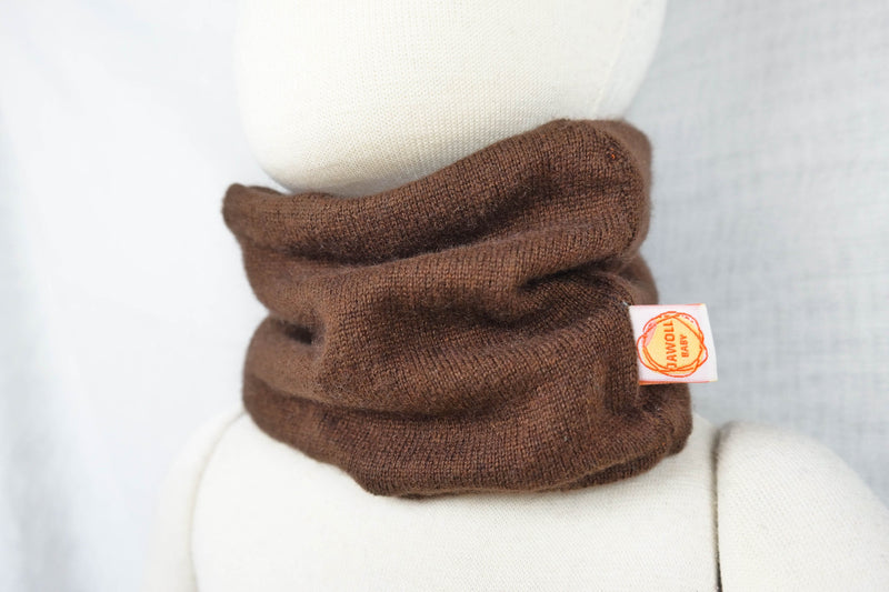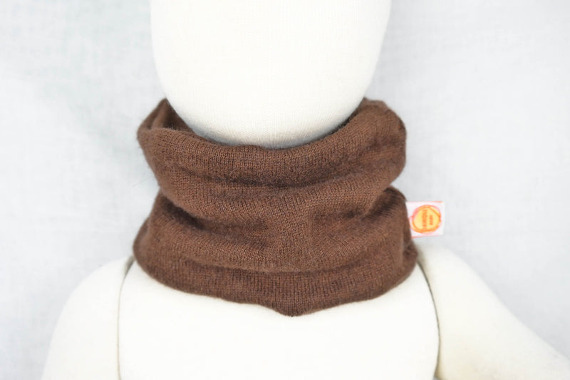 This loop tube scarf in brown for babies was once a sweater made of soft silk (35%) and cashmere (65%).