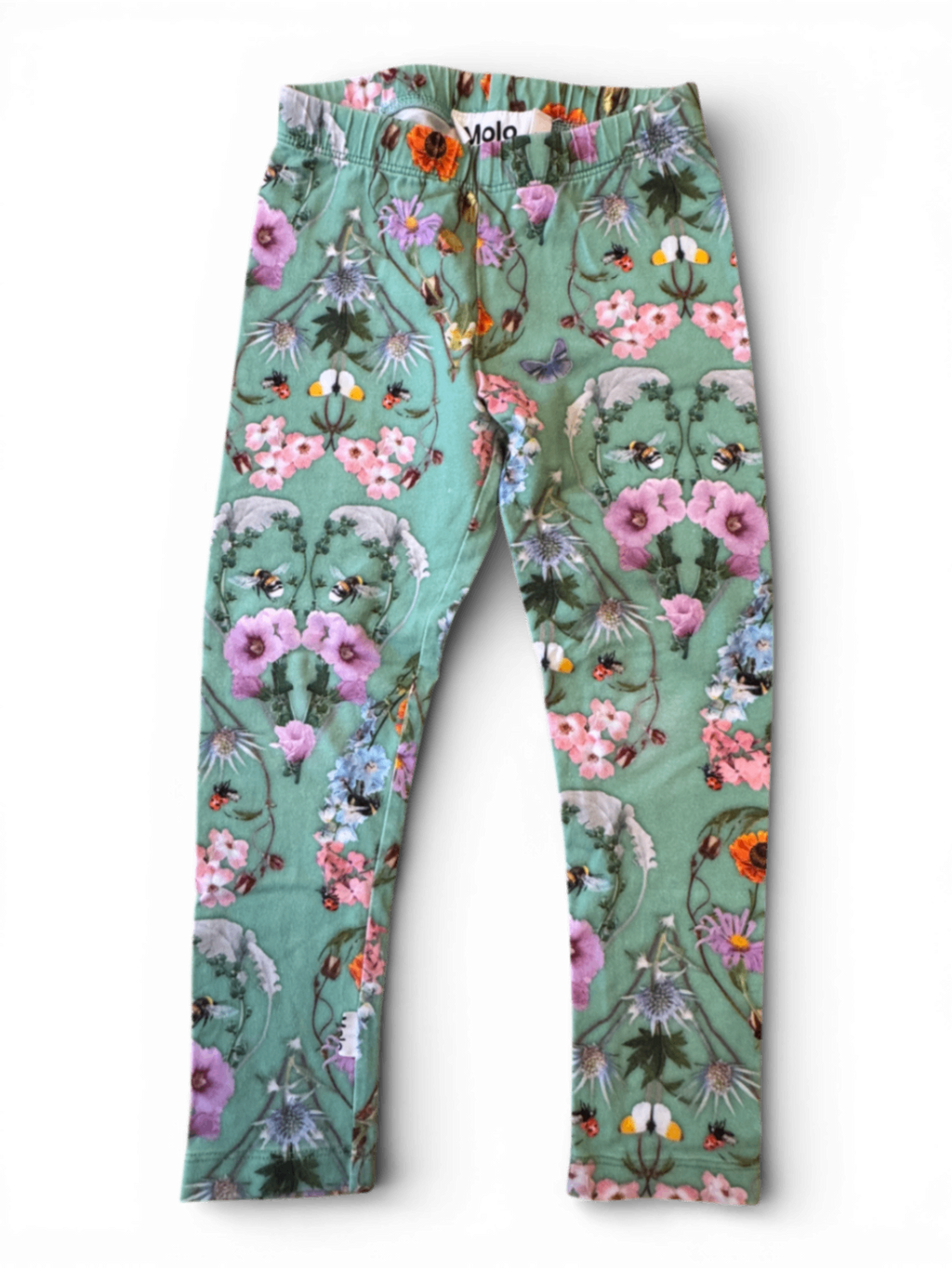 Diese bezaubernde grüne Leggings mit Frühlingswiesen-Motiv von Molo bietet einen bequemen Sitz und ist ein echter Blickfang. Für den perfekten Frühlingslook!