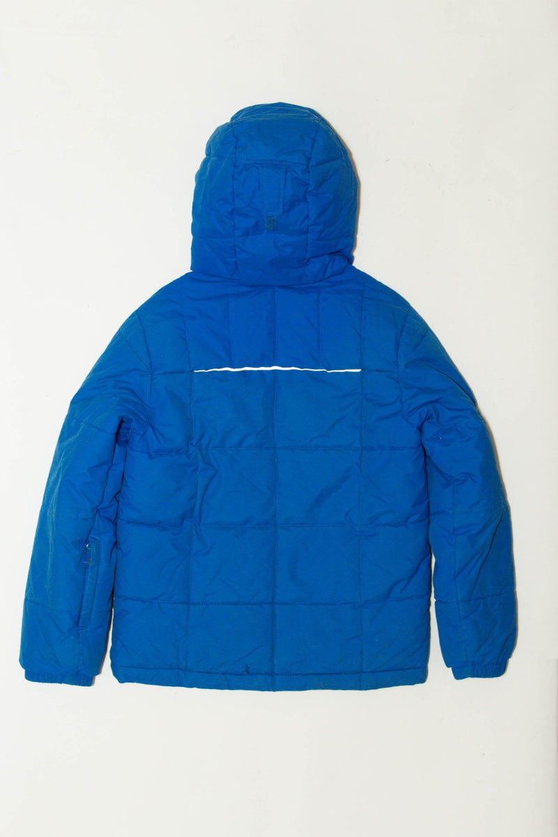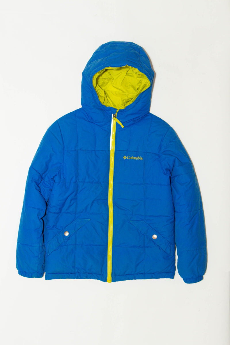 COLUMBIA - Ski jacket in bright blue-green. Snow guard and removable hood.