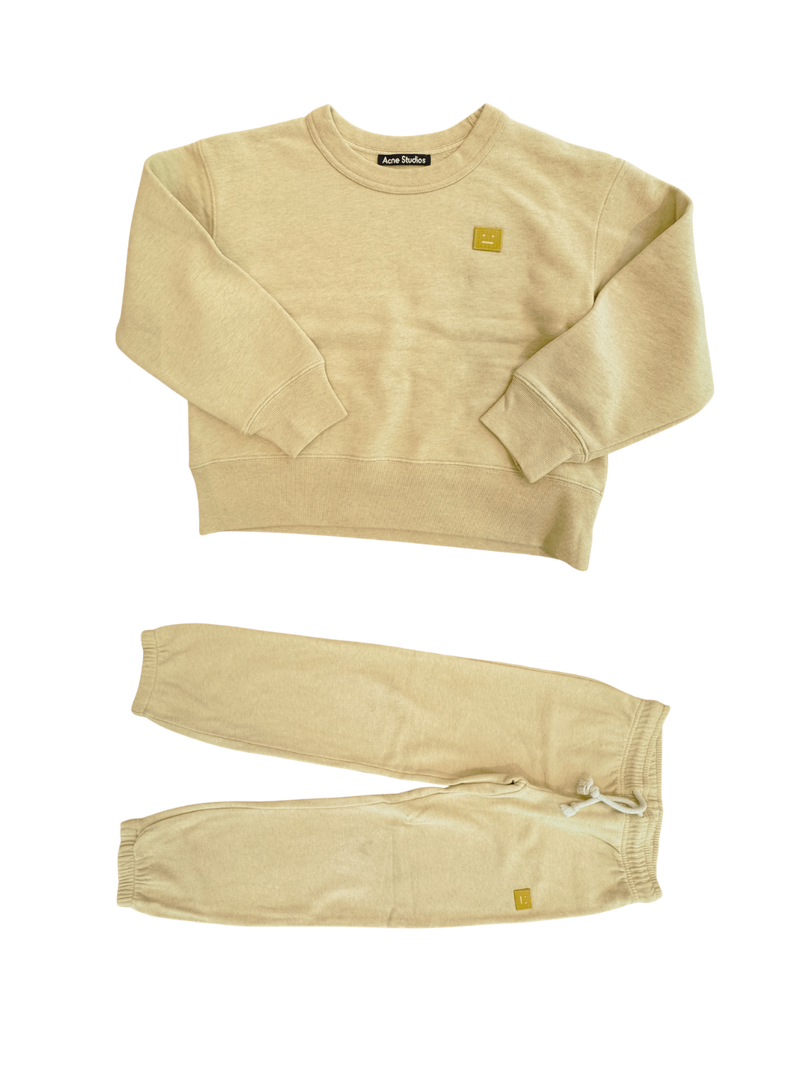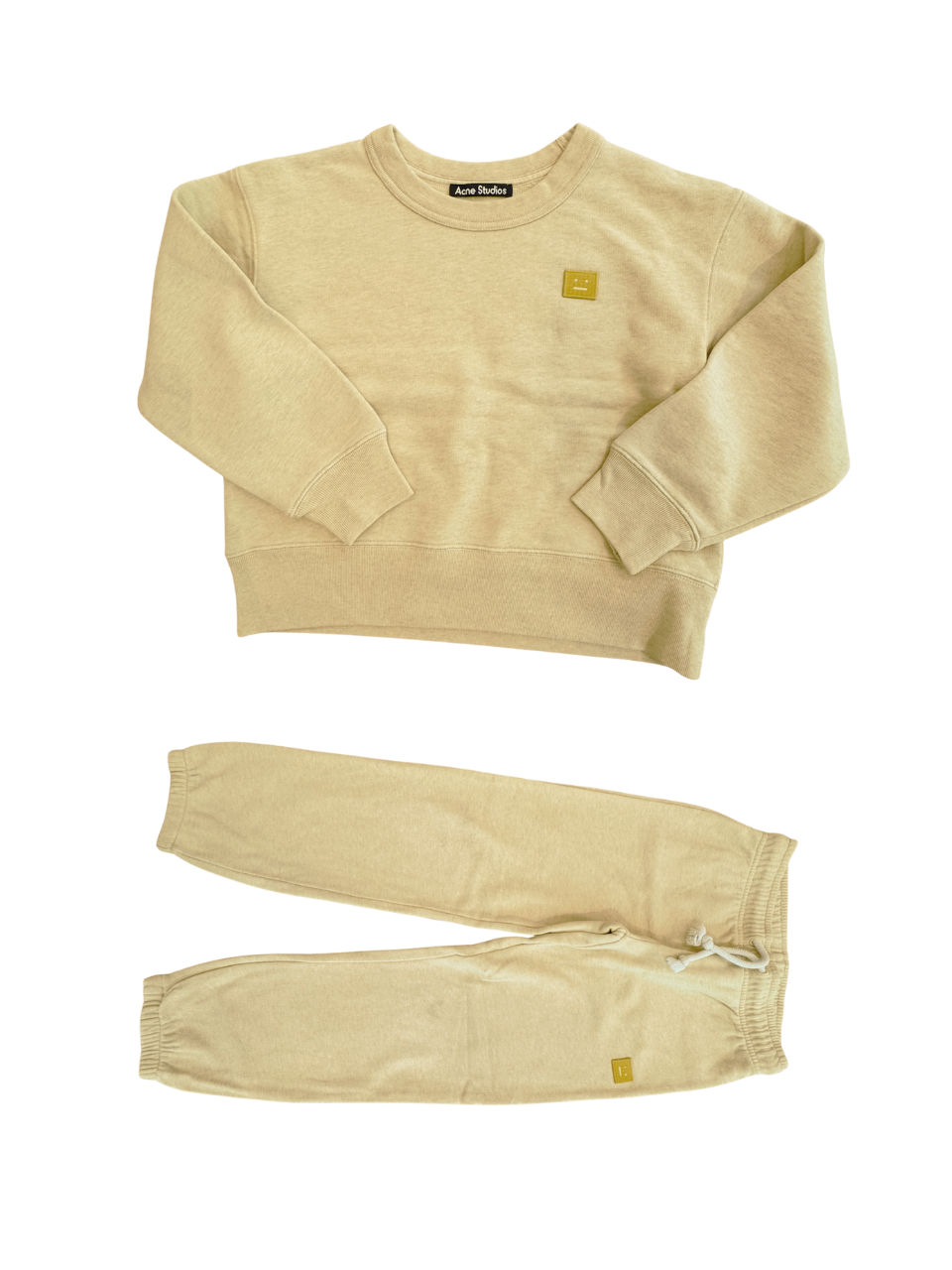 Dieses hochwertige Sweatset von Acne Studios ist perfekt für dein Kind, das Komfort und Stil schätzt. Das Set besteht aus einem Sweatshirt und Jogginghosen in elegantem senfgelb, gefertigt aus weichem Jersey. Ideal für den Alltag, bietet es langlebigkeit und zeitloses Design.