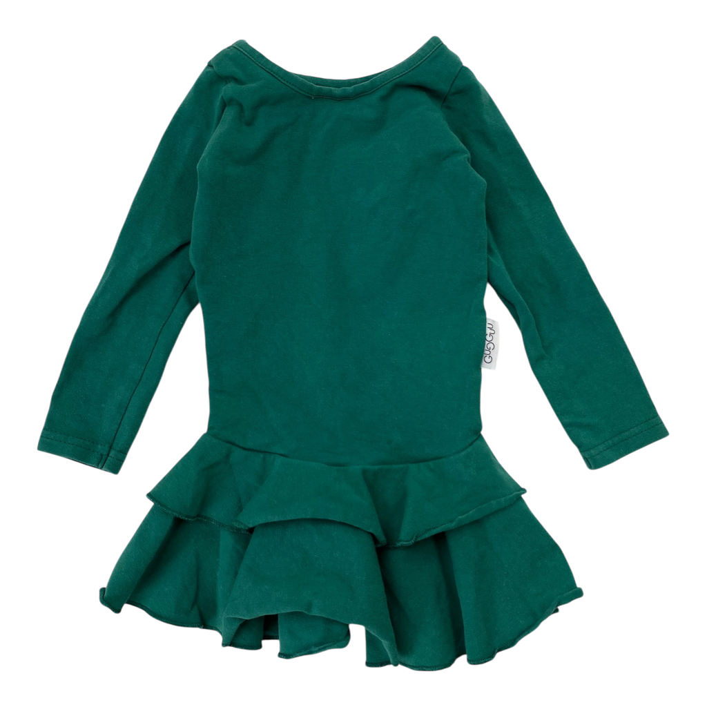 Gugguu long sleeved dress with frills. The orignal color has faded off.