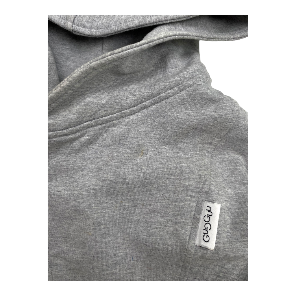 Gugguu sweat hoodie jacket with a zipper opening and with a pocket on the side. The item has a tiny stain.