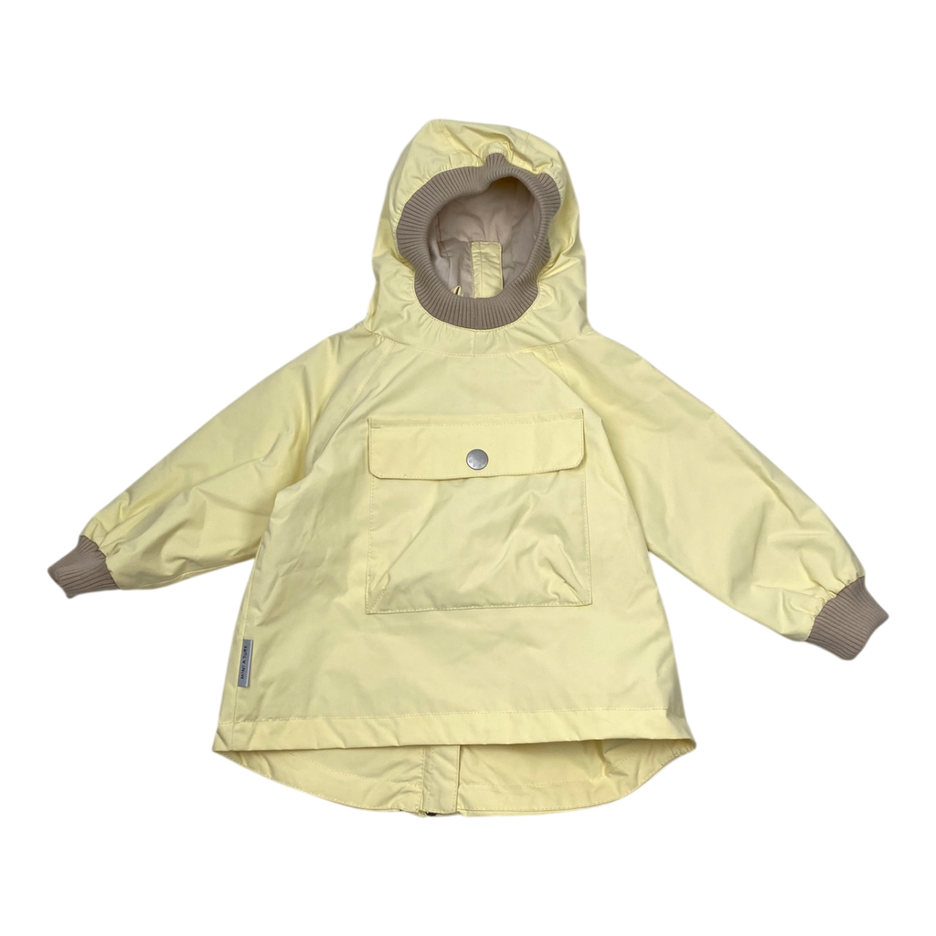 Mini A Ture baby Vito spring midseason anorak sample has a light quilted padding inside. The jacket has a zipper closure in the back, a large front pocket, ribbed cuffs and a reflecting logo on the back. Excellent condition.