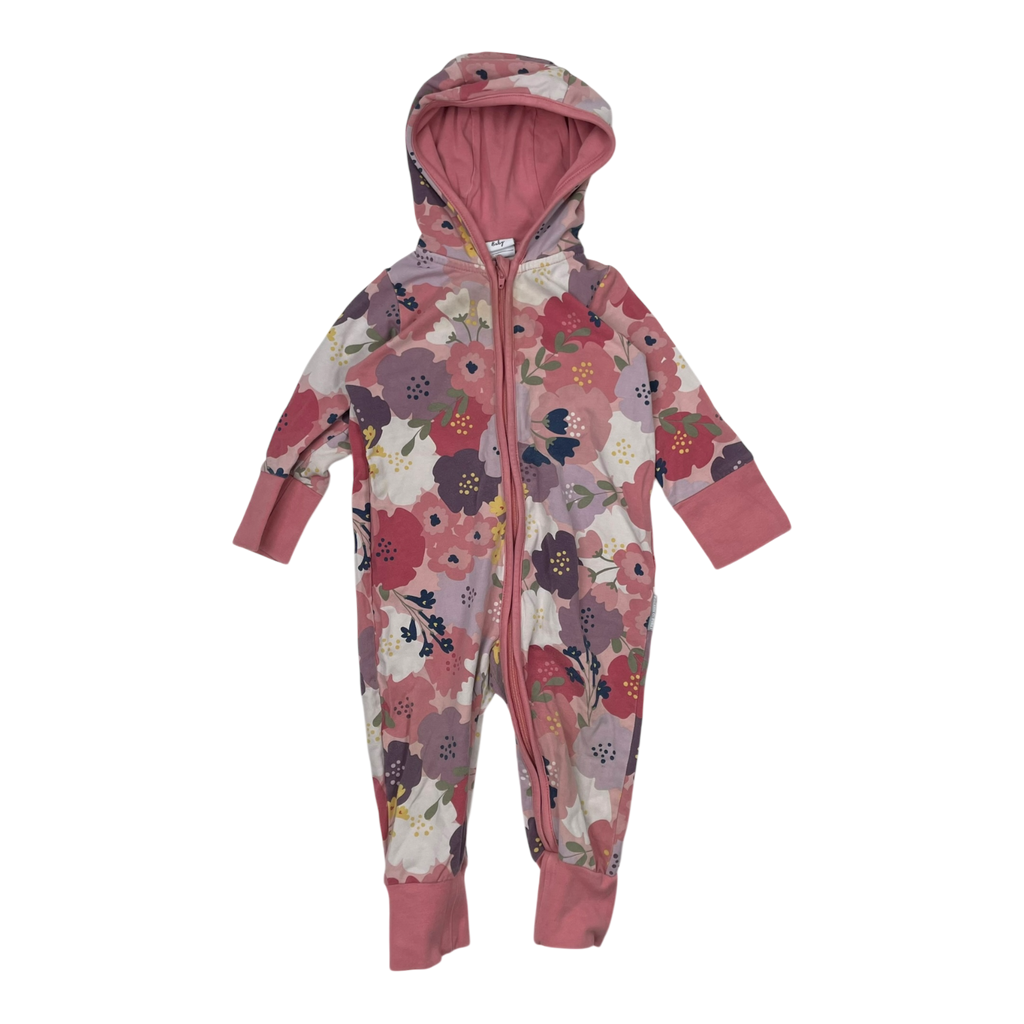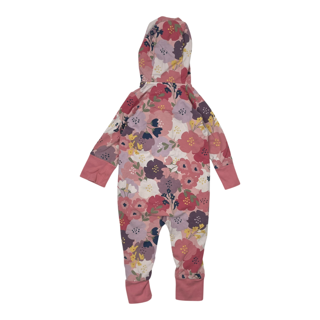Polarn O. Pyret hooded sweat onesie with a full length zipper.