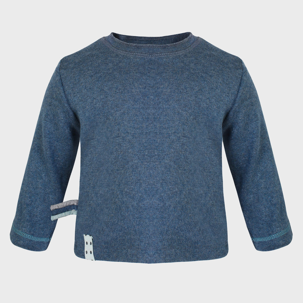 The long-sleeved shirt in indigo melange by OrganicEra not only looks casual and comfortable, but also offers the baby a nice wearing comfort with the light, elastic fabric rib. The light material is made of pure organic cotton. While the top gently hugs the child’s body, a great fit is also achieved.