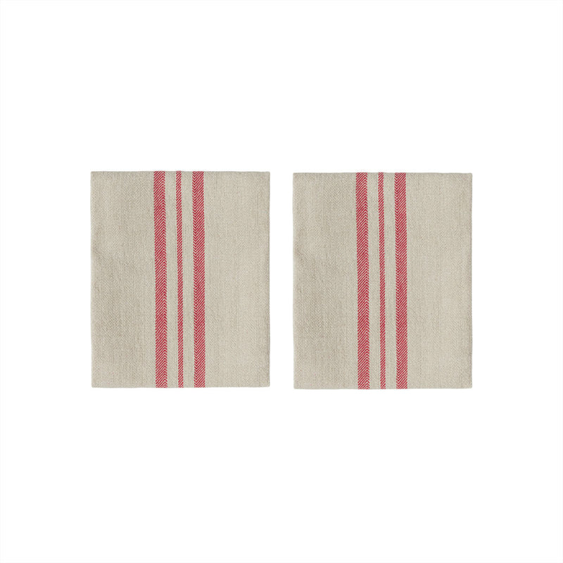 The Linu Napkin is a pack of two featuring premium quality of organic cotton. As part of the Linu series, these napkins boast a herringbone weave and a simple design adorned with a variation of different stripes.