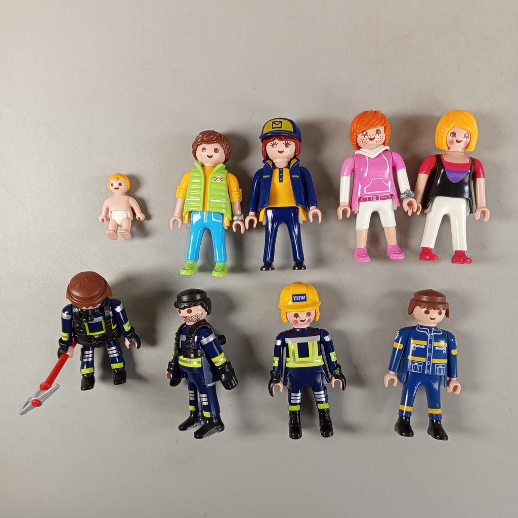 Hol dir das Playmobil Spielekonvolut mit 12 detailreichen Figuren aus Feuerwehr-, THW- und Post-Szenen. Enthalten sind ein rotes Feuerwehrauto FIRE 4512, ein gelbes Postfahrrad, ein blauer Förderbandmechanismus, eine Baby-Inkubatoreinheit und zahlreiche Möbel- und Küchenelemente mit originalen Druckaufdrucken. Ideal für kreatives Rollenspiel und fantasievolle Einsätze. Das Set befindet sich in gutem gebrauchten Zustand mit leichten Gebrauchsspuren. Die Vollständigkeit konnte nicht überprüft werden. Gib diesem Spielzeug ein neues Zuhause und fördere nachhaltiges Spielen! Hinweis: Enthält Kleinteile, nicht geeignet für Kinder unter 3 Jahren.
