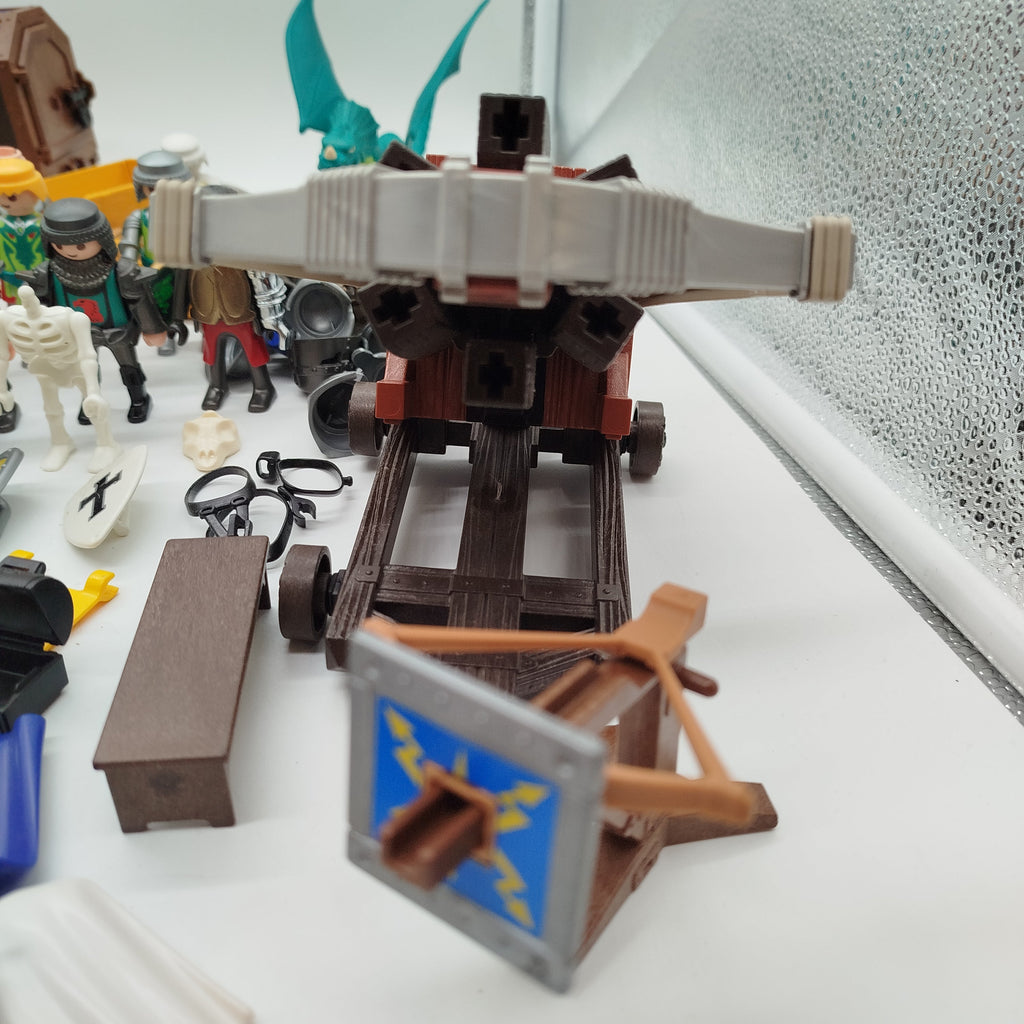 Hol dir das umfangreiche Playmobil Ritterwelt-Set und erwecke das Mittelalter zum Leben! Dieses große Konvolut enthält Figuren, darunter Ritter, Wachen und Bauern, dazu zahlreiche Waffen, Schilde, Pferde, Wagen und sogar einen grünen Drachen. Die detailreichen Accessoires wie eine Ballista, Schatztruhe und Ritterrüstungen bieten unzählige Spielmöglichkeiten. Das Set befindet sich in sehr gutem gebrauchten Zustand, Verpackung fehlt. Gib diesem Spielzeug ein neues Zuhause und lass neue Abenteuer im Kinderzimmer entstehen!