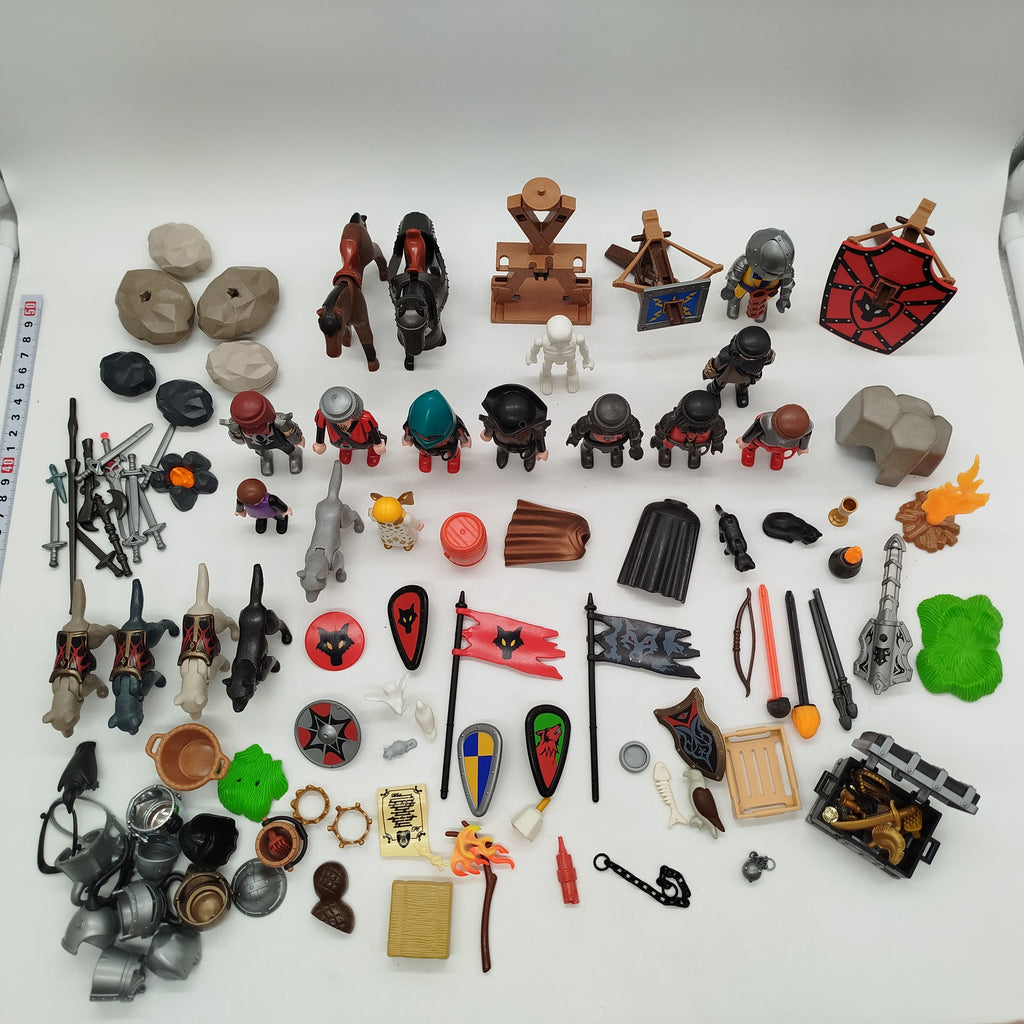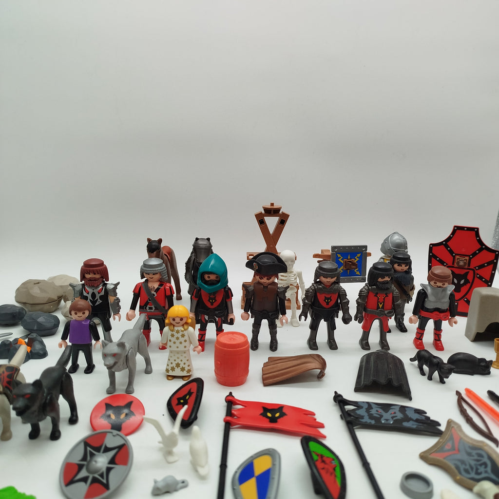 Hol dir das Playmobil Wolfritter Spieleset und tauche in mittelalterliche Abenteuer mit Rittern, Pferden und wilden Wölfen ein. Dieses umfangreiche Set enthält 11 Ritterfiguren, 2 Kinderfiguren, 1 Skelett, 3 Pferde, 4 Wölfe mit Ausrüstung sowie zahlreiche Waffen, Fahnen und Schilde mit Wolf-Emblem. Ideal für kreative Rollenspiele und Sammler historischer Playmobil-Themen. Das Set befindet sich in einem sehr guten gebrauchten Zustand, leichte Gebrauchsspuren sind möglich. Die Verpackung fehlt. Hinweis: Enthält Kleinteile, nicht geeignet für Kinder unter 3 Jahren. Gib diesem Spielzeug ein neues Zuhause und erlebe neue Abenteuer im Ritterreich!