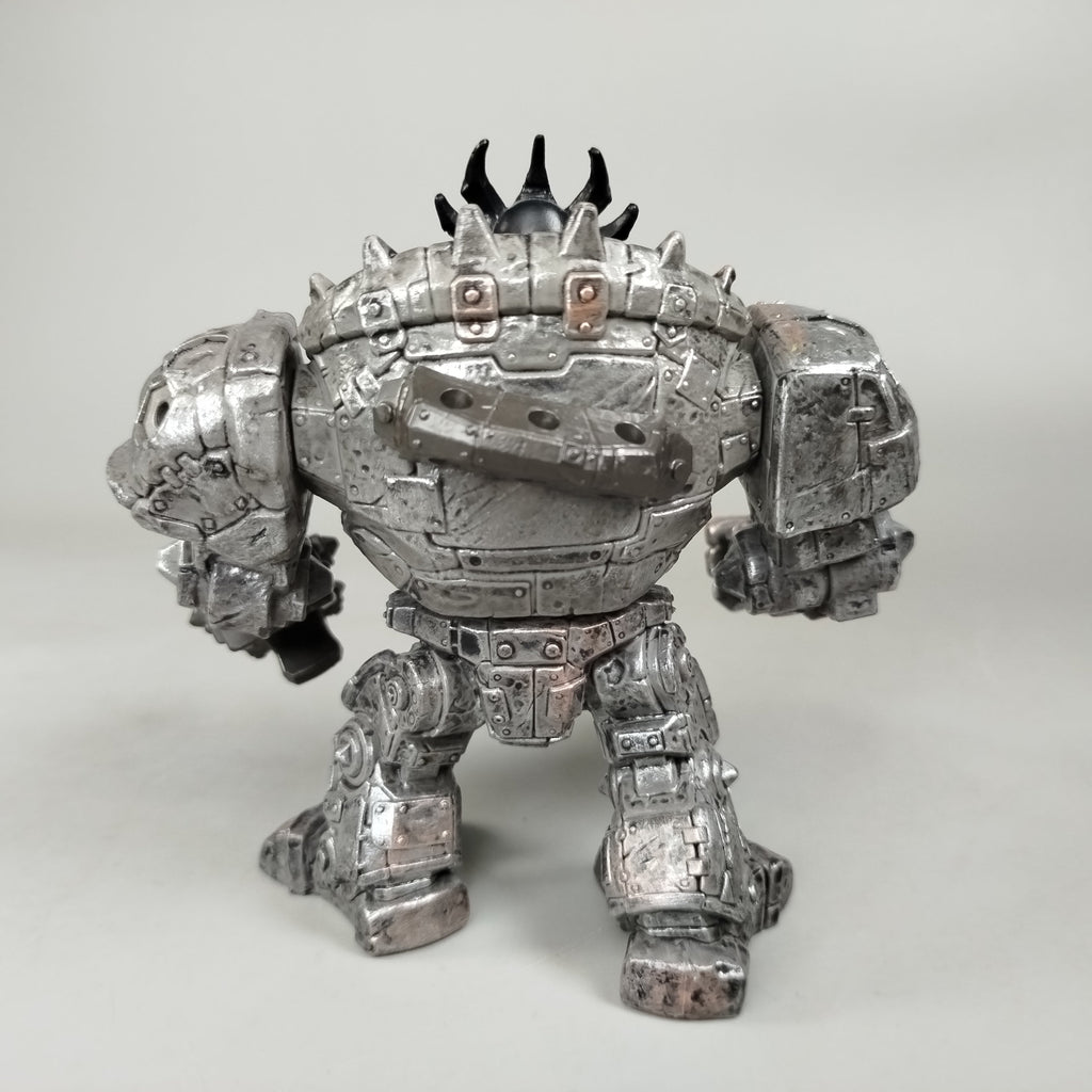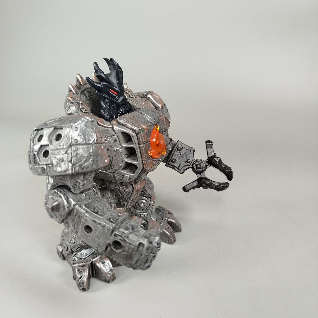 Hol dir das detailreiche Fantasy-Spielzeug für actionreiche Rollenspiele: Es handelt sich um eine einzelne, bewegliche Roboter- bzw. Golem-Figur mit artikulierten Armen und Beinen, metallisch silberner Oberfläche, schwarzem stacheligem Kopf mit roten Augen, transluzent-oranger Brustpartie mit Wirbel-Emblem sowie einer großen Greifklaue als linker Arm. Handzubehör fehlt. Das Spielzeug befindet sich in gutem gebrauchten Zustand. Gib dieser Figur ein neues Zuhause und schenke ihr eine zweite Spielfreude. Hinweis: Enthält Kleinteile, nicht geeignet für Kinder unter 3 Jahren.