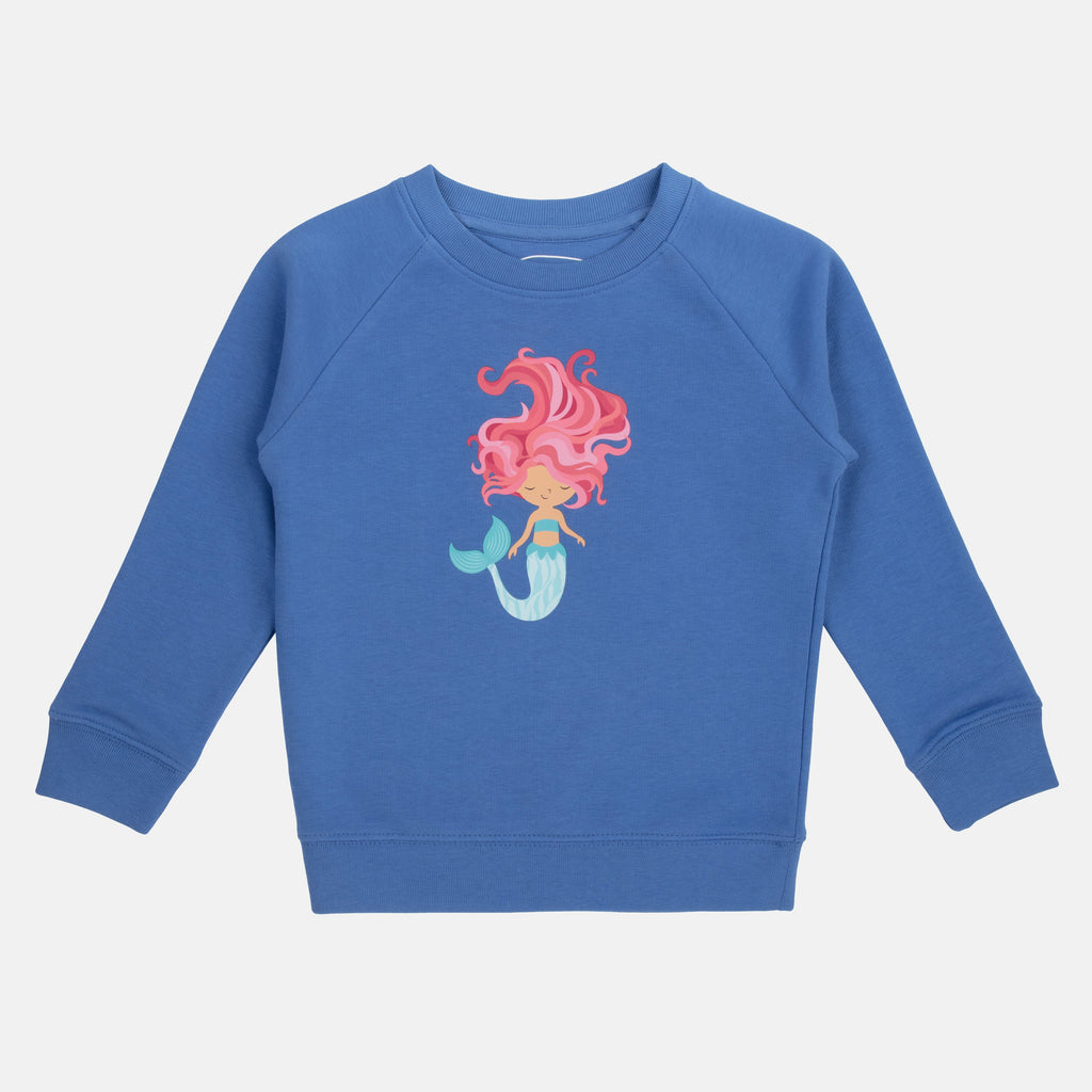 Das süße Design eines Meermädchens ziert die Vorderseite des blauen Sweatshirts und lädt zum Träumen und Fantasieren ein. Auf der Rückseite des Shirts, oberhalb des Saums, befindet sich das Markenlabel von Who said mit unserer Herzensbotschaft "All Colours Are For Everyone", die unsere Überzeugung von Gleichheit und Toleranz unterstreicht.