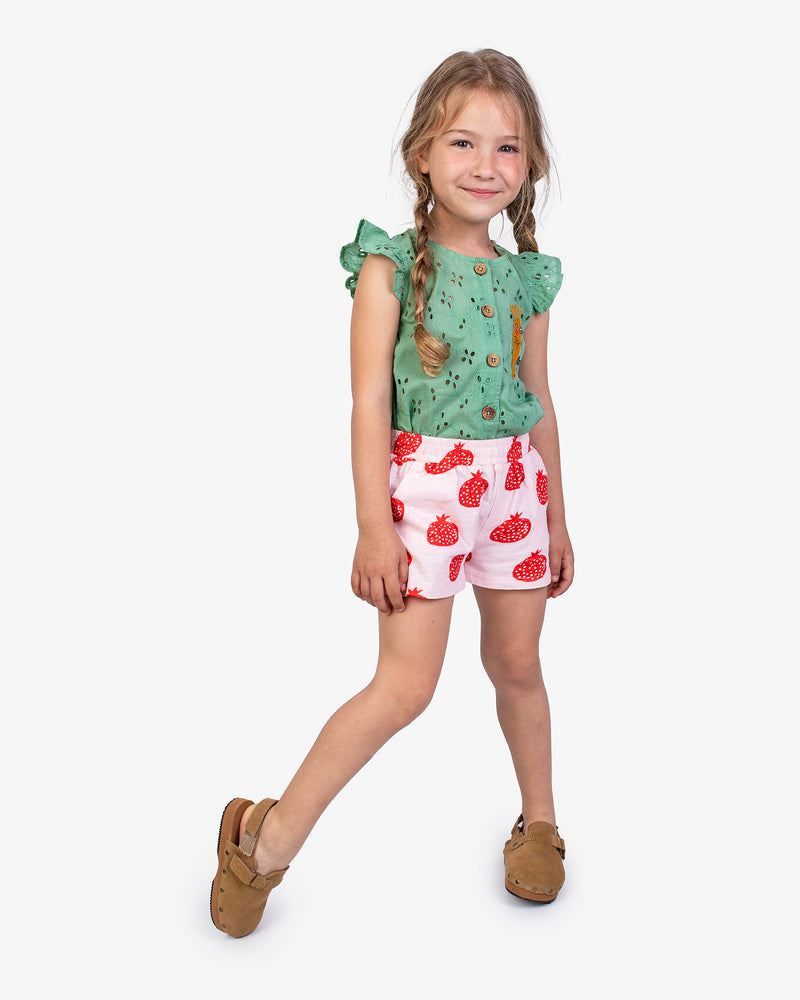 Organic Cotton Short Cloth for kids with Stamping FREE. The pants have side pockets and an elastic belt. On the back takes two pockets with a coconut button.