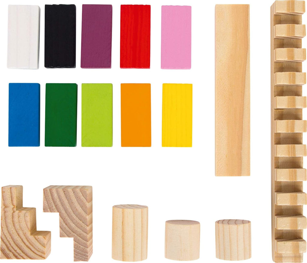- Die Dominosteine sind in sechs Farben gehalten und ermöglichen ein schönes "Farbspektakel" beim Umwerfen