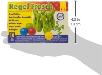 - 6 Pins in Form von lustigen Fröschen und 4 bunte Holzkugeln