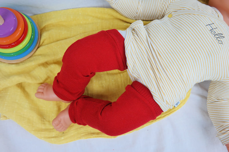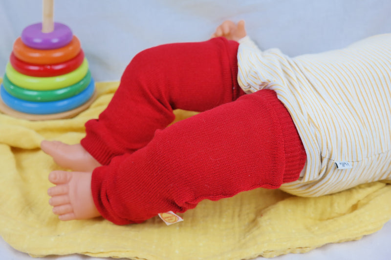 These baby leg warmers in a bright red were once a sweater made of silk (55%) and cashmere (45%) - and are therefore cuddly soft.