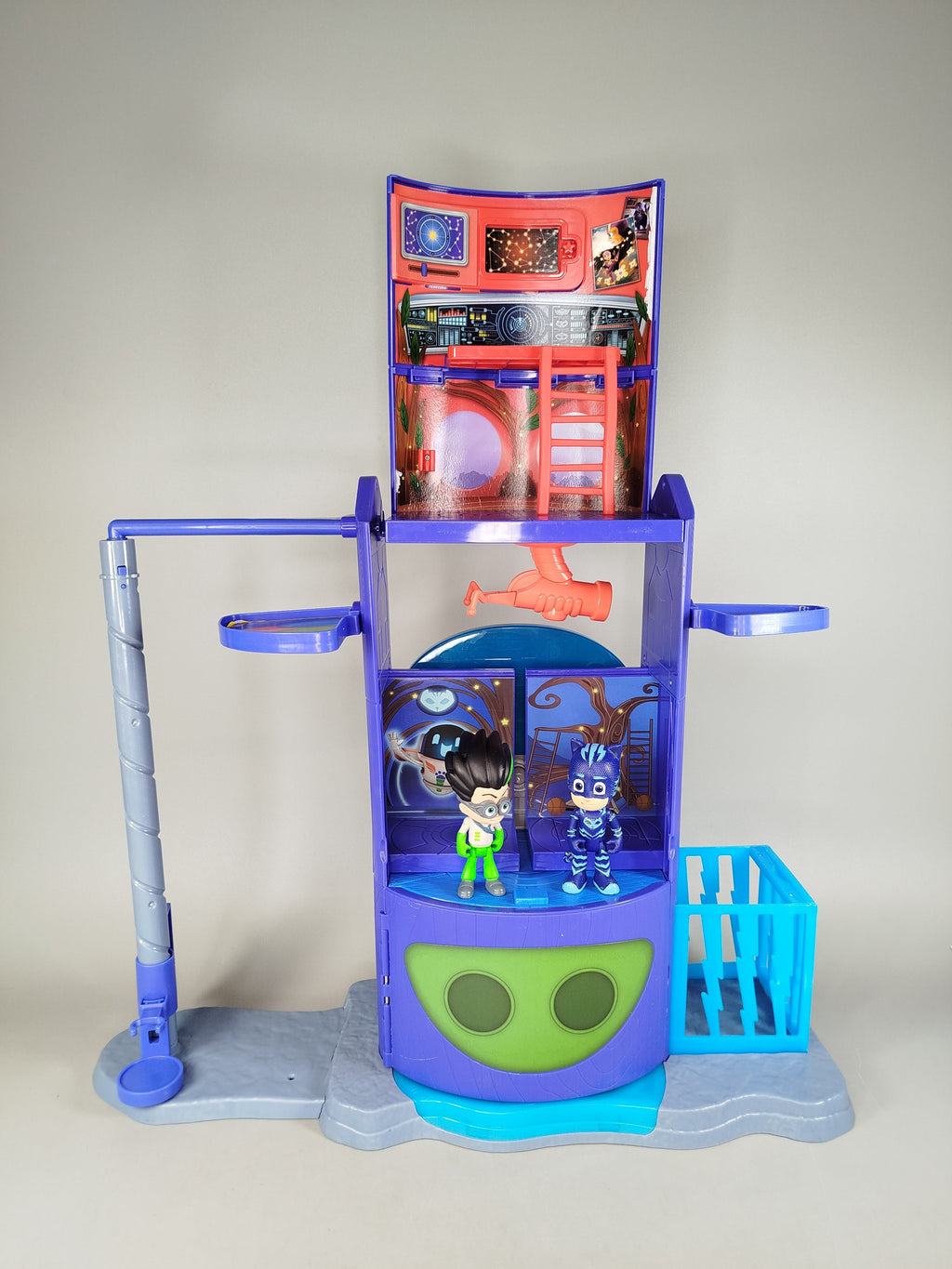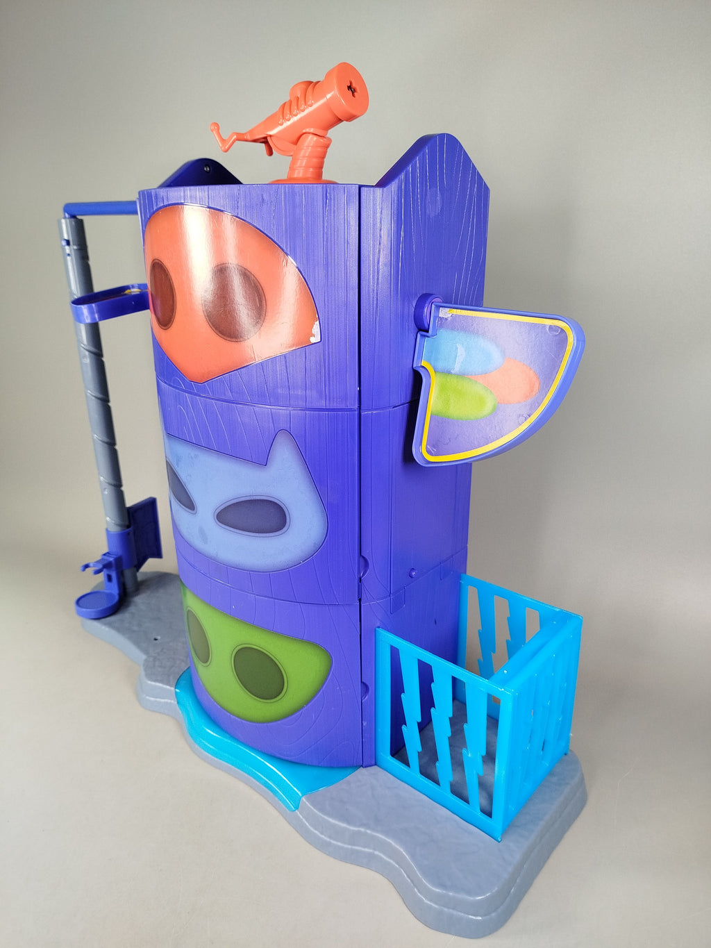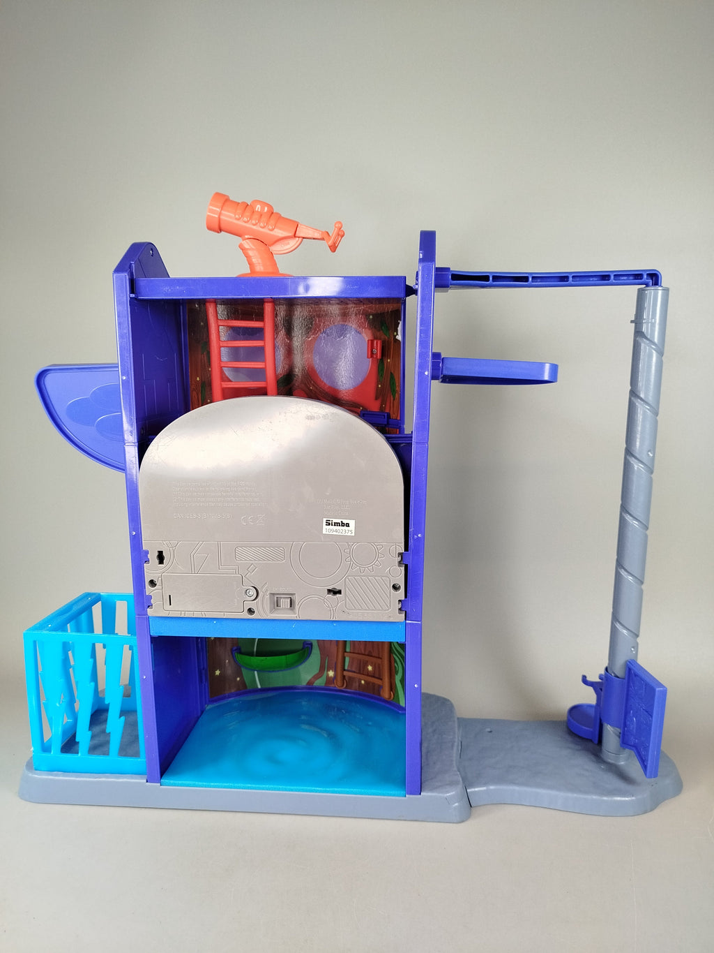 Hol dir PJ Masks das Simba Spielhaus mit drei Ebenen, Spiralrutsche und zwei Figuren für spannendes Rollenspiel. Das Set enthält blaue Plattformen, ein rotes Teleskop und ein Gefängnistor. Elektronik funktioniert nicht mehr, Spielspuren sichtbar, aber vollständig. Gib diesem Spielzeug ein neues Zuhause!