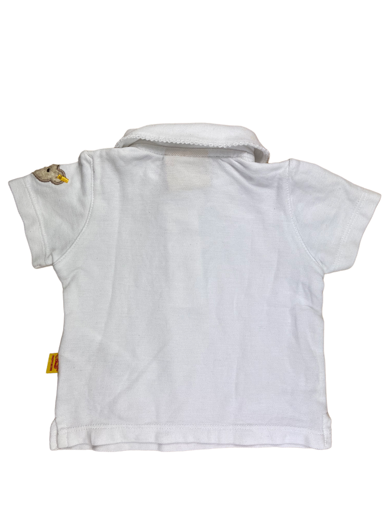 Kein nachhaltiges Label/kein Label mit Textilsiegel. Weißes T-Shirt von Steiff mit kleinem Bär auf dem Ärmel.