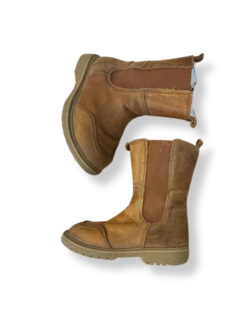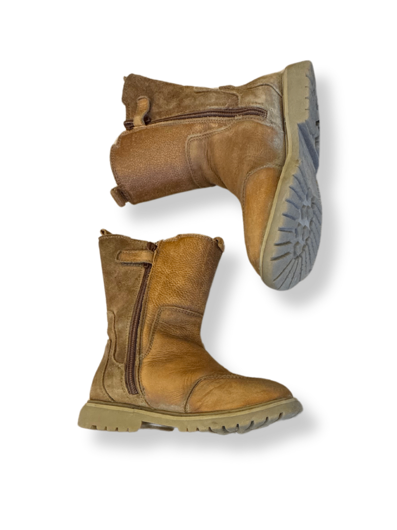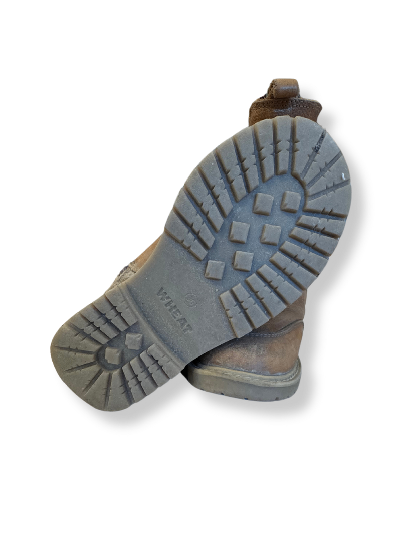 WHEAT - Diese robusten, braunen Stiefel aus offenporigem Leder bieten sowohl Stil als auch Langlebigkeit. Perfekt für den urbanen Dschungel und naturverbundene Abenteuer. Die stabile Sohle garantiert Komfort und Standfestigkeit auf jedem Terrain. Das lammfellfutter hält Kinderfüße auch bei kalten Temperaturen mollig warm!