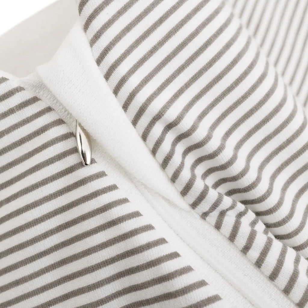 Da der langlebige Außensack über zwei Größen mit deinem Baby mitwächst, sorgen vier Knöpfe an der Schulter für große Sicherheit und ein zusätzlicher Abnäher unter dem Arm für mehr Stabilität und Haltbarkeit. Er ist außerdem mit einem Sicherheitsreißverschluss ausgestattet, der das Freistrampeln verhindert. Bei den beiden Innensäcke in zwei aufeinander folgenden Größen sorgen weiche Nähte und zarte Bündchen für einen hohen Tragekomfort und die optimale Passform.