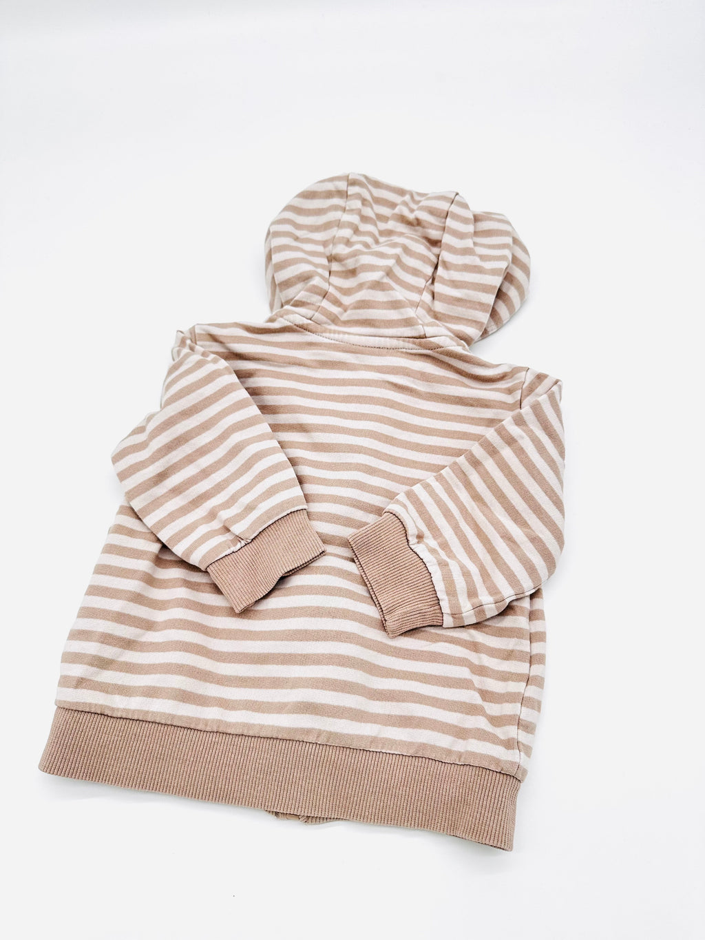 Diese zeitlose Baby-Kapuzenjacke von H&M überzeugt durch ihr schlichtes, modernes Streifen-Design in warmen Beige- und Cremetönen. Ein echtes Basic-Teil, das sich vielseitig kombinieren lässt und in keiner Babygarderobe fehlen sollte – ideal für Alltag, Spaziergänge und die Übergangszeit.Die Jacke besteht aus 100 % Baumwolle und fühlt sich angenehm weich auf der Haut an. Das Material ist atmungsaktiv, hautfreundlich und perfekt für empfindliche Babyhaut geeignet. Dank des durchgehenden Reißverschlusses lässt sich die Jacke schnell und unkompliziert an- und ausziehen – besonders praktisch unterwegs oder beim Umziehen.