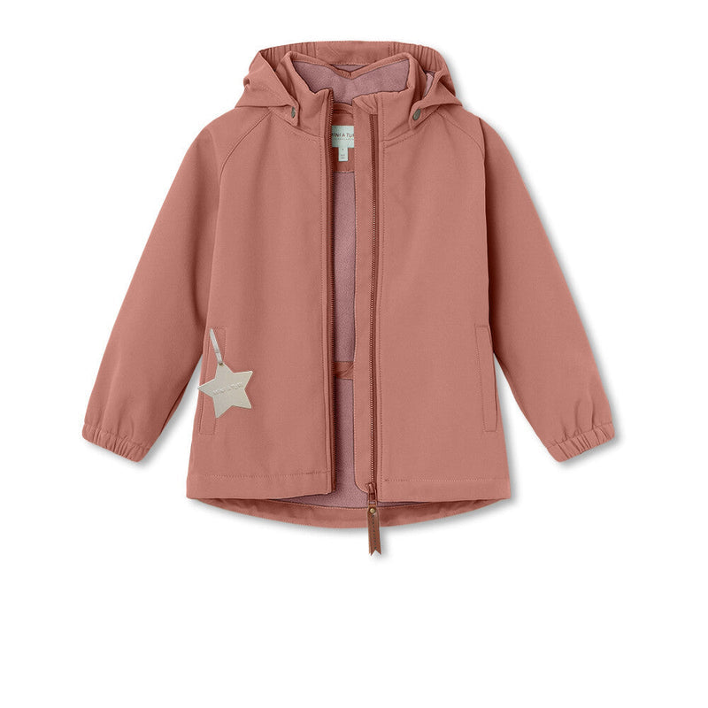 Practical and beautiful softshell jacket with side pockets and removable hood for a timelessly beautiful look. Adjustable waist on the back for an even better fit. MINI A TURE's characteristic reflex star is placed in the right pocket and has a small reflex logo on the back.